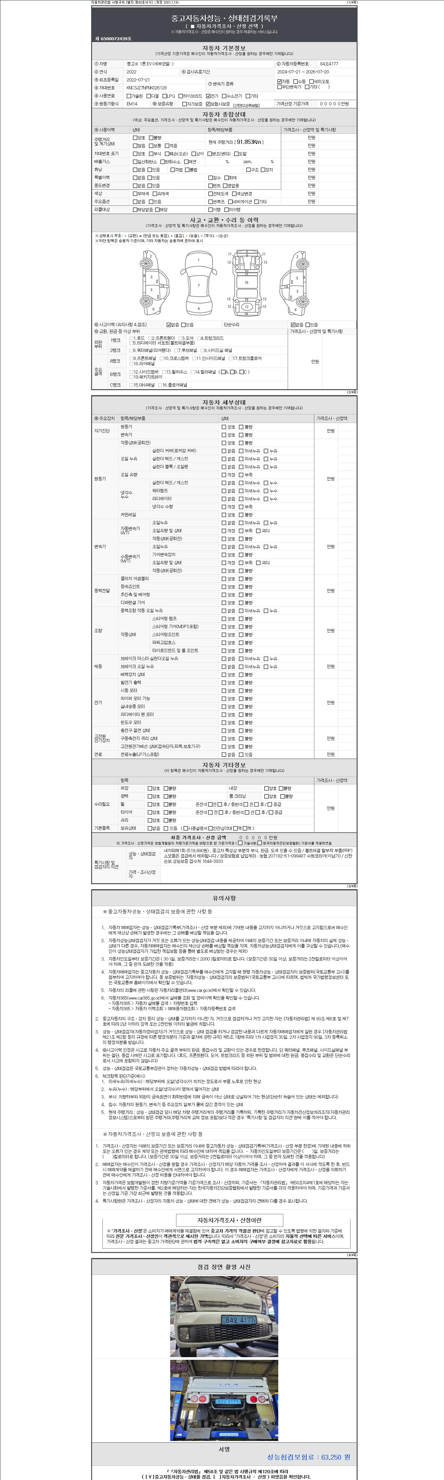 | 주행거리 | 91,853 km | 차량번호 | 84오4177 | 사고유무 | 성능기록부 참조 | 제시번호 | 제 2147483647 호 |