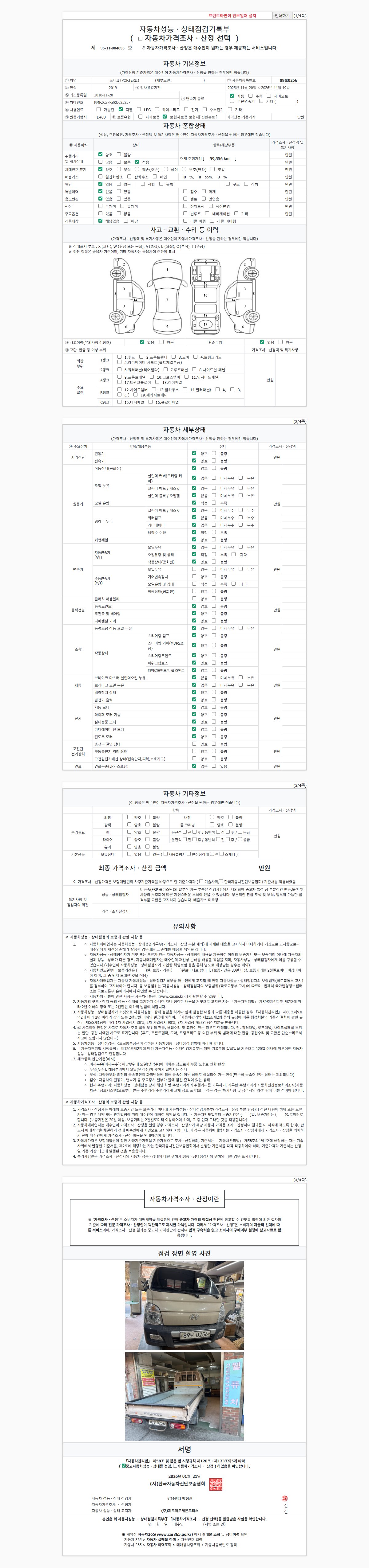 | 주행거리 | 59,556 km | 차량번호 | 89보0256 | 사고유무 | 성능기록부 참조 | 제시번호 | 제 2026008313 호 |