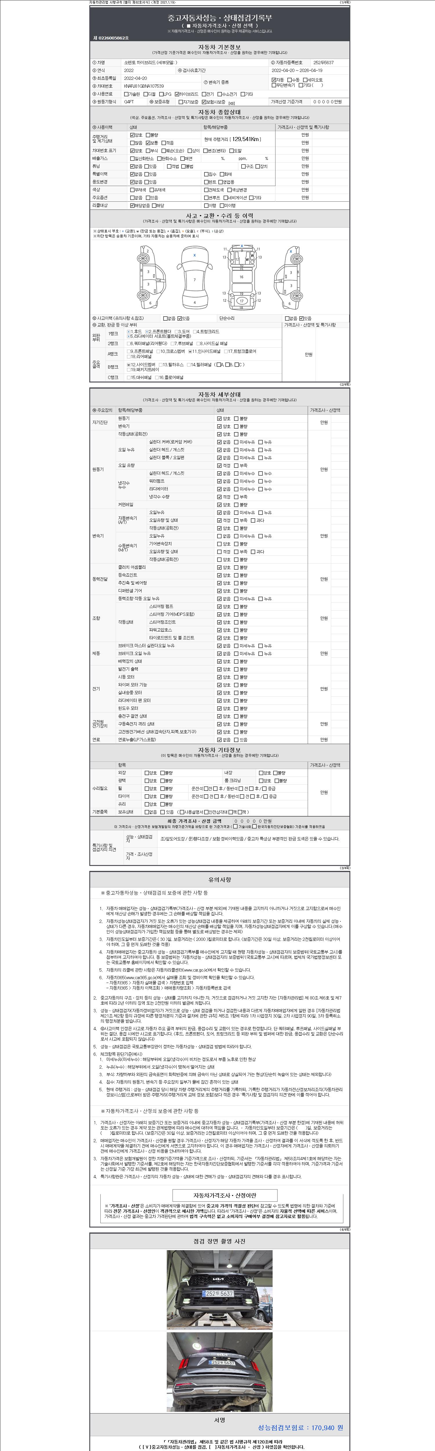 | 주행거리 | 129,541 km | 차량번호 | 252두5637 | 사고유무 | 성능기록부 참조 | 제시번호 | 제 2147483647 호 |
