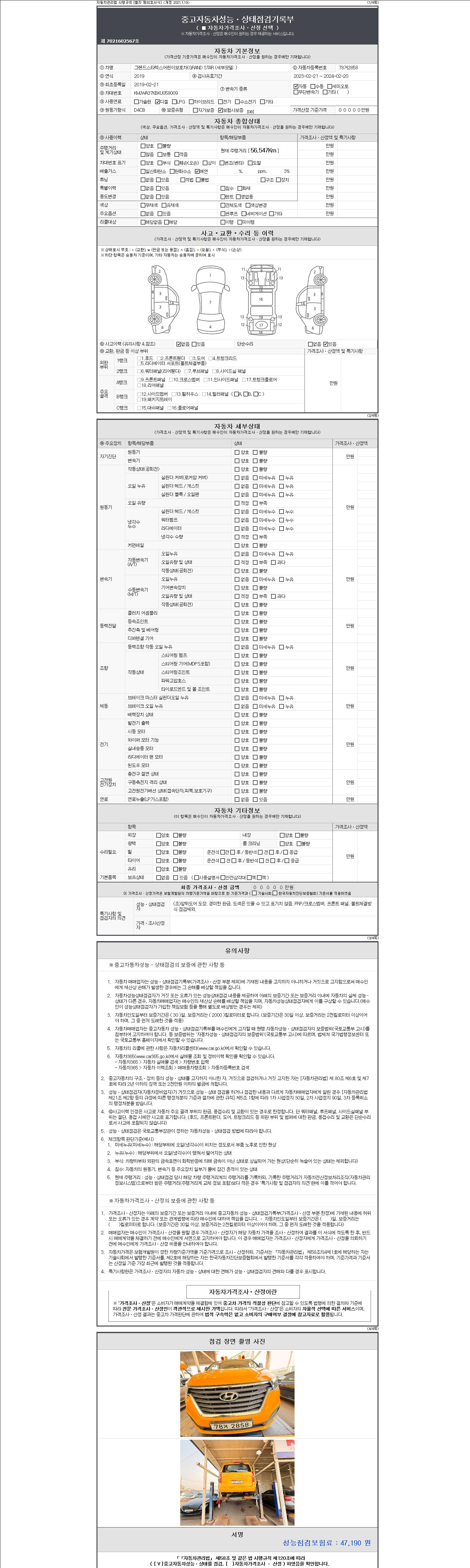 - 2. 차량 등록증이나 성능점검지 등을 상담자에게 요청및 확인하시고 사전에 미리 점검 하시기를 권유드립니다.