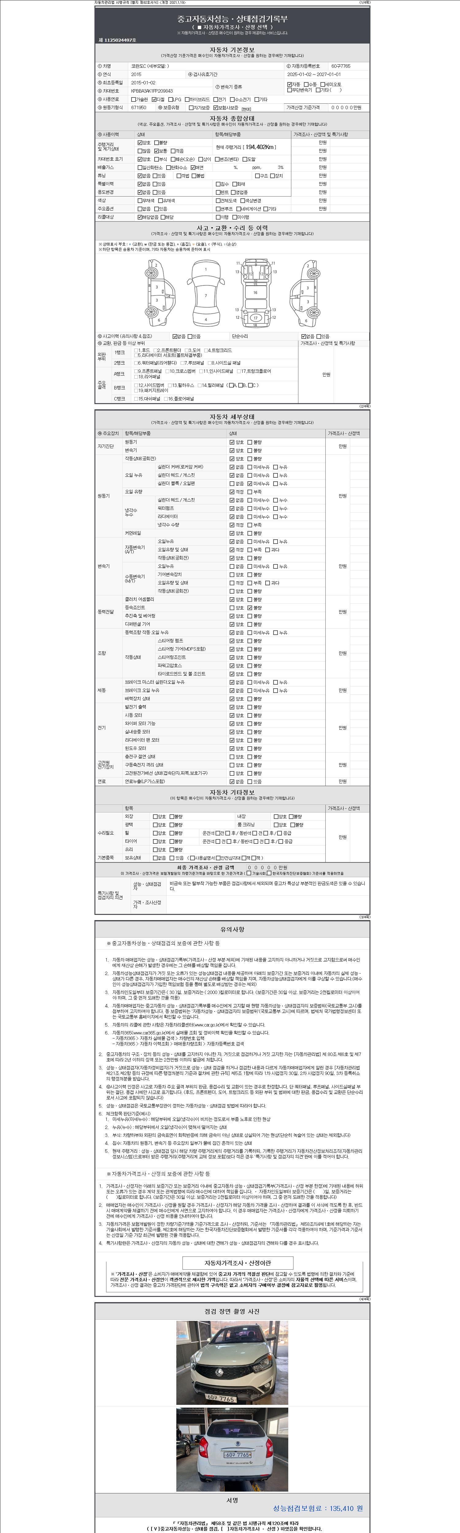 | 주행거리 | 194,402 km | 차량번호 | 60구7765 | 사고유무 | 성능기록부 참조 | 제시번호 | 제 2147483647 호 |
