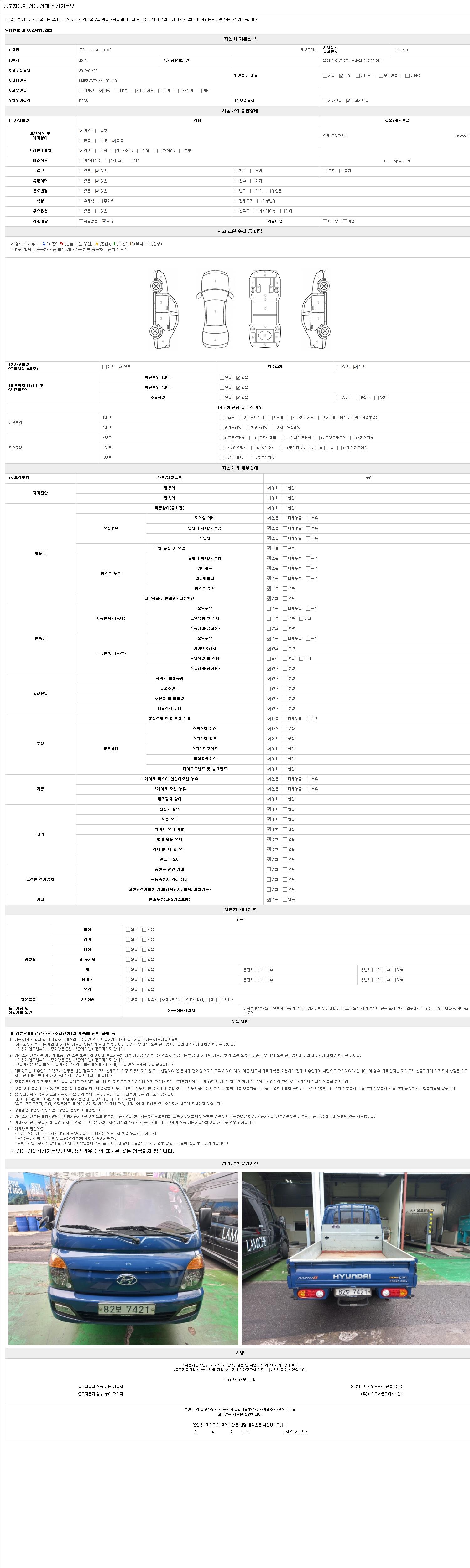 - 2. 차량 등록증이나 성능점검지 등을 상담자에게 요청및 확인하시고 사전에 미리 점검 하시기를 권유드립니다.