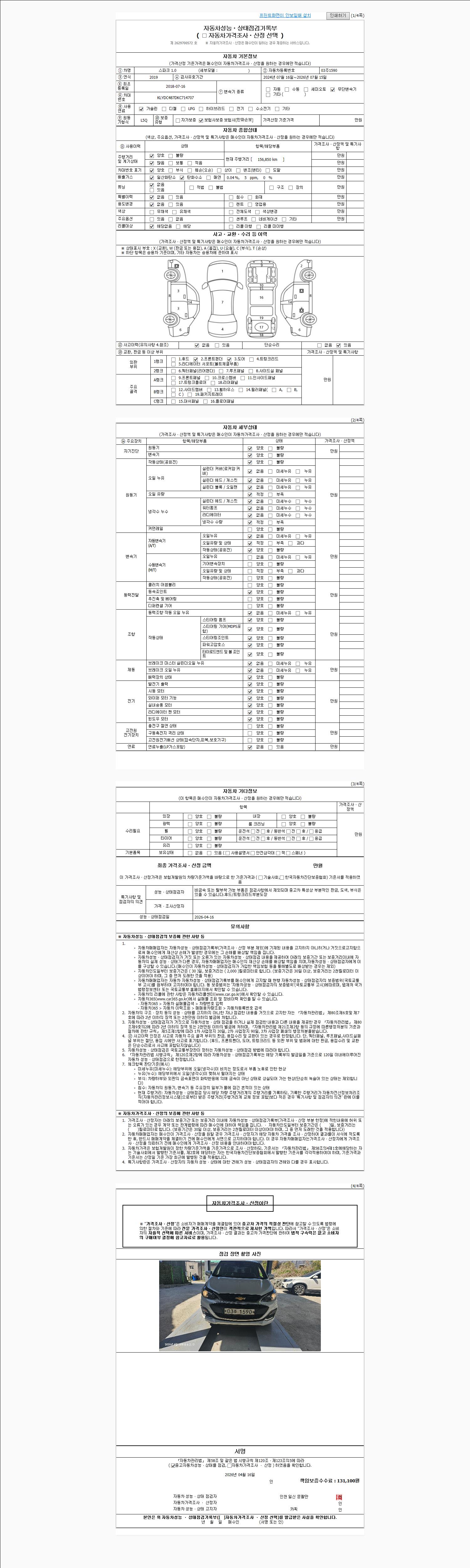 - 2. 차량 등록증이나 성능점검지 등을 상담자에게 요청및 확인하시고 사전에 미리 점검 하시기를 권유드립니다.