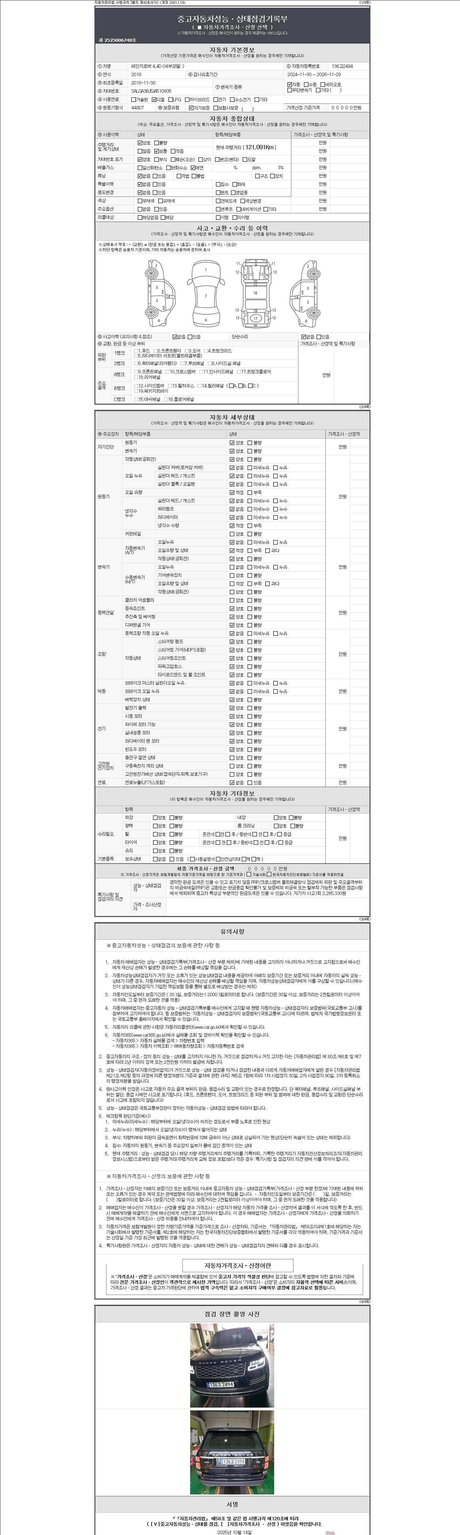 | 주행거리 | 121,091 km | 차량번호 | 136고2494 | 사고유무 | 성능기록부 참조 | 제시번호 | 제 2147483647 호 |