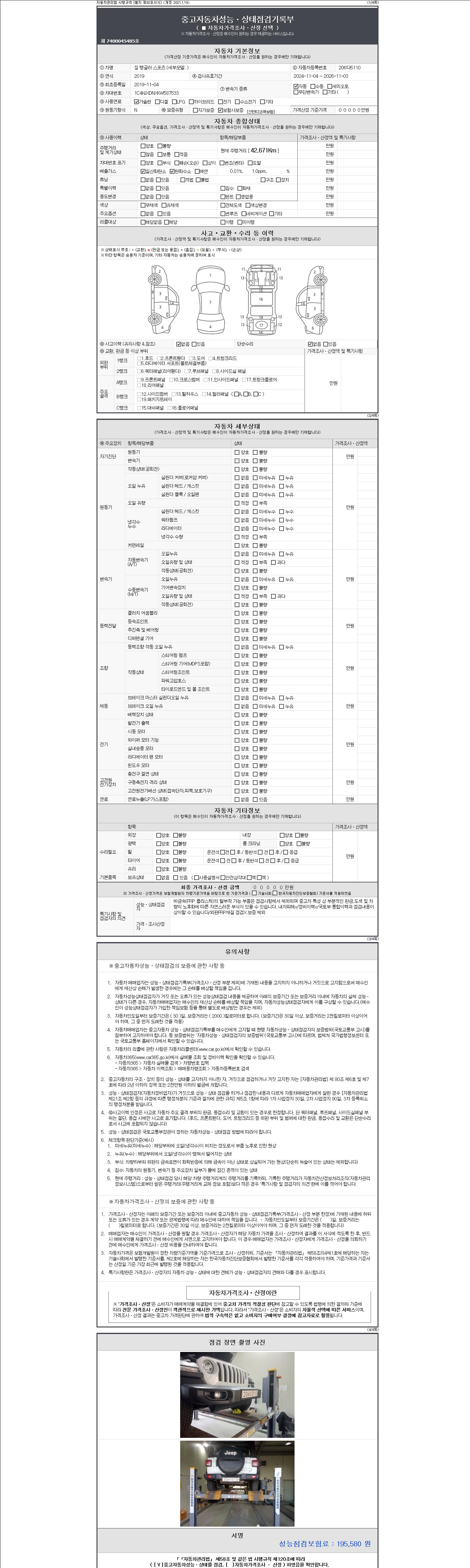 - 사고유무 : 성능기록부 참조