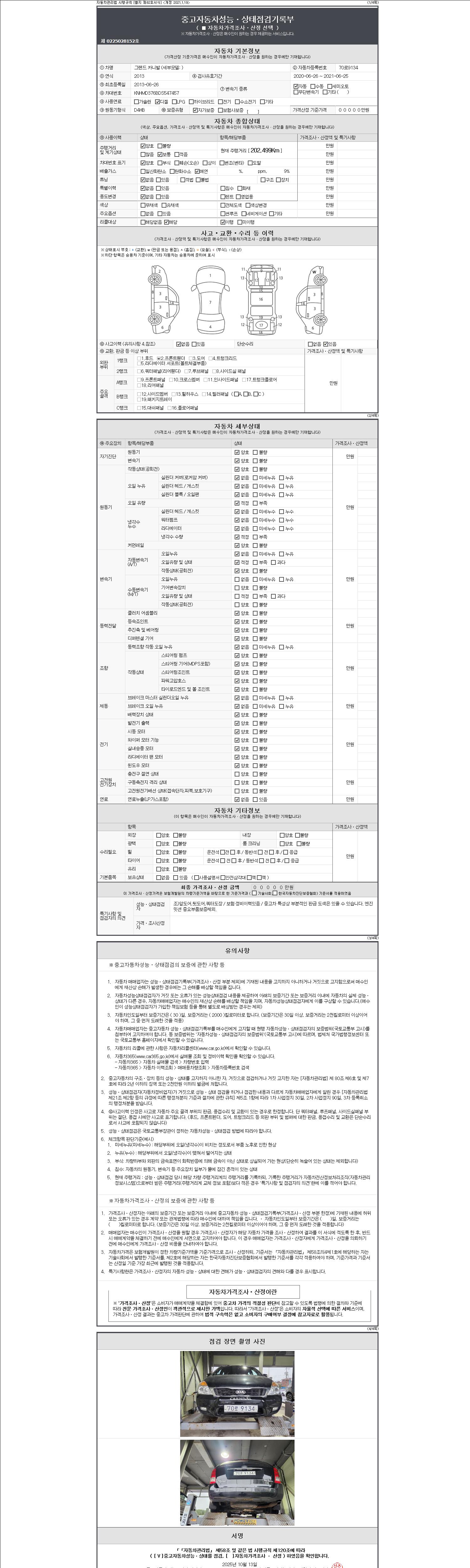 -중고자동차 매매업자를 통해 차량을 구입하실 경우 반드시 "중고자동차 성능, 상태점검 기록부"를 교뷰 받으셔야 하며, 매매업자는 반드시 의무 교부 하여야 압니다.