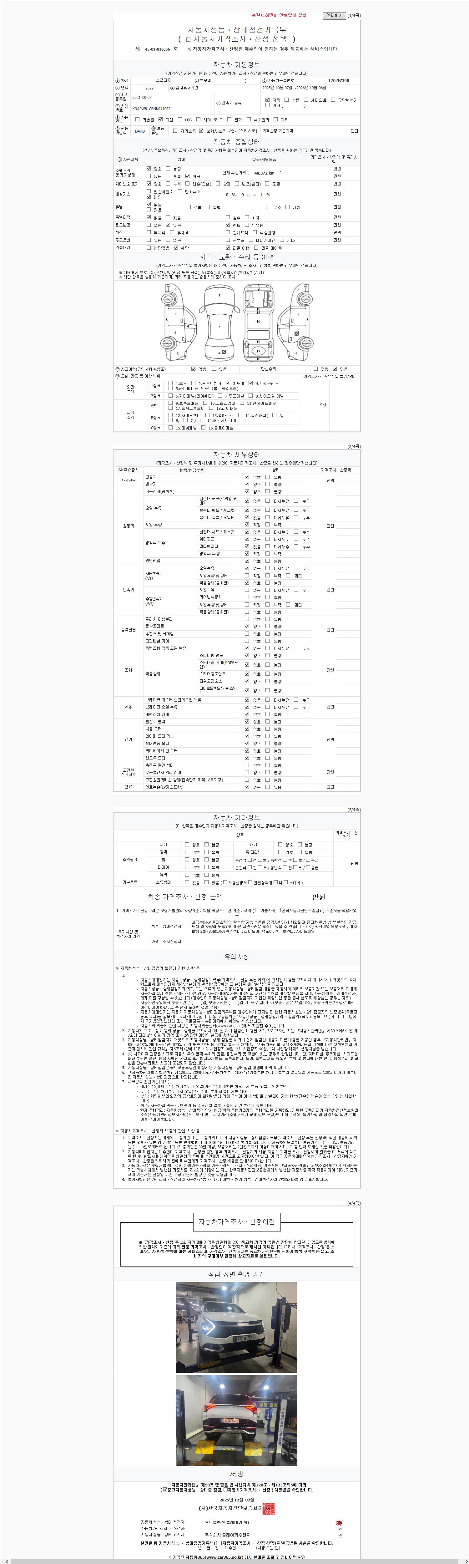 | 주행거리 | 48,372 km | 차량번호 | 170라7398 | 사고유무 | 성능기록부 참조 | 제시번호 | 제 2147483647 호 |