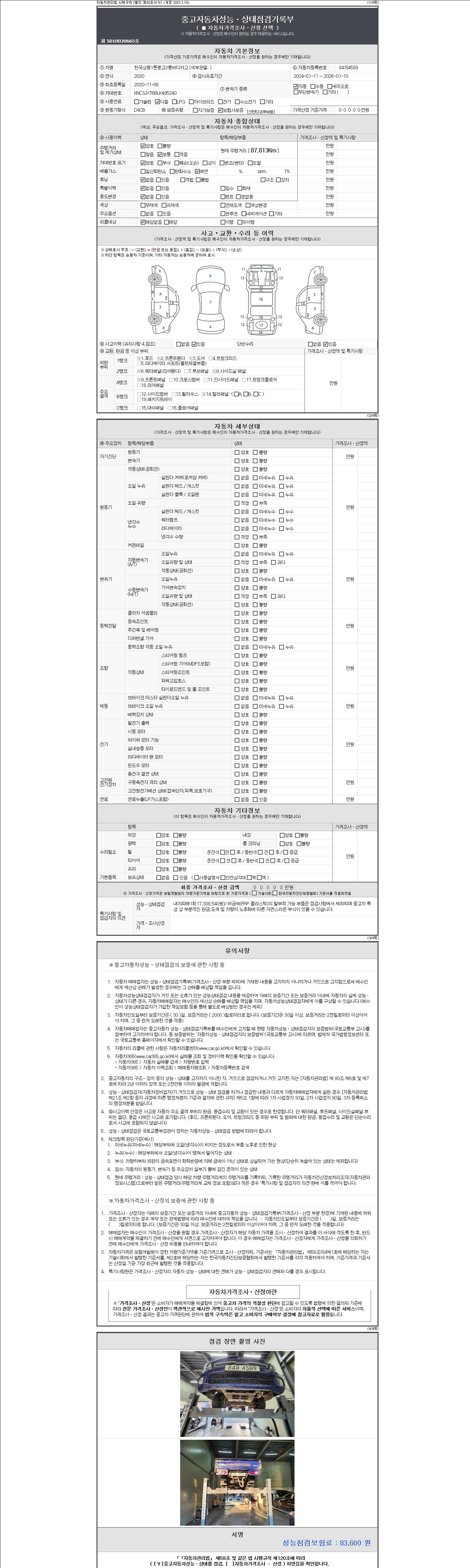 | 주행거리 | 87,813 km | 차량번호 | 84저4589 | 사고유무 | 성능기록부 참조 | 제시번호 | 제 2147483647 호 |
