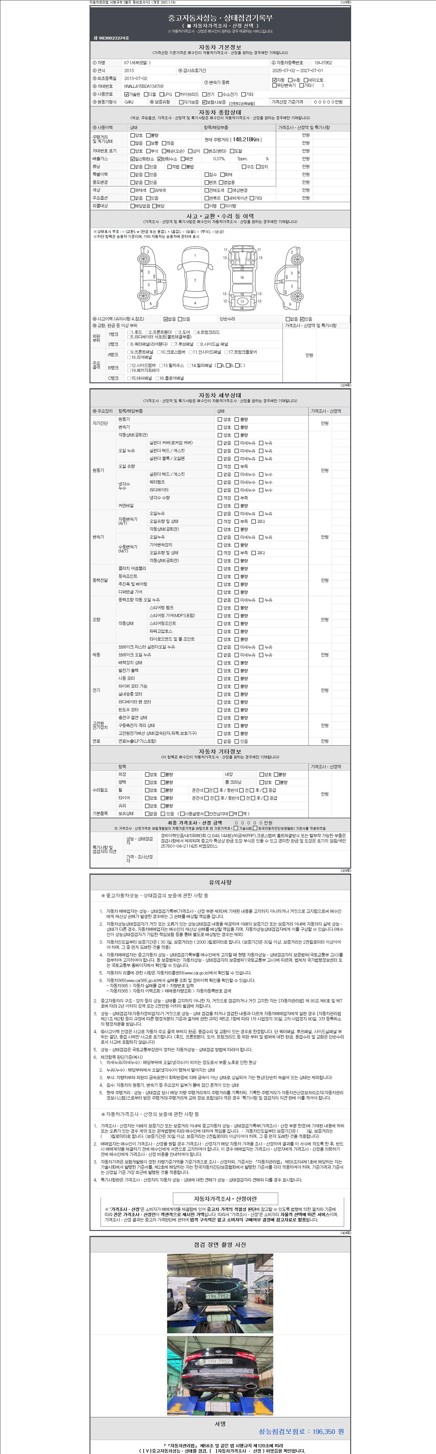 - 2. 차량 등록증이나 성능점검지 등을 상담자에게 요청및 확인하시고 사전에 미리 점검 하시기를 권유드립니다.