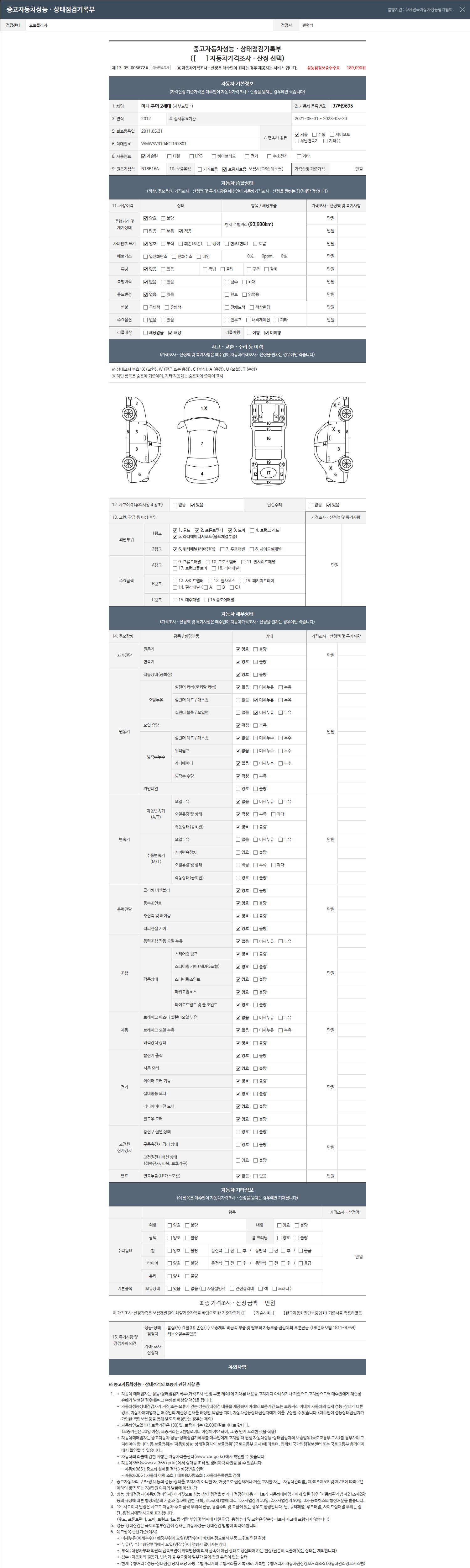 -중고자동차 매매업자를 통해 차량을 구입하실 경우 반드시 "중고자동차 성능, 상태점검 기록부"를 교뷰 받으셔야 하며, 매매업자는 반드시 의무 교부 하여야 압니다.