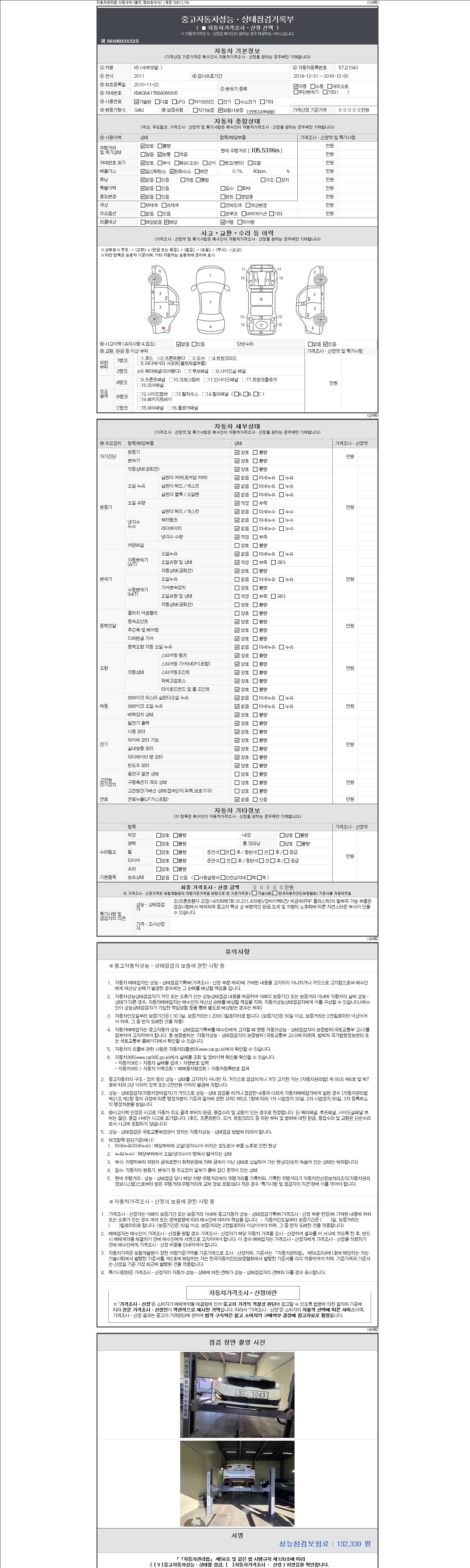 - 사고유무 : 성능기록부 참조