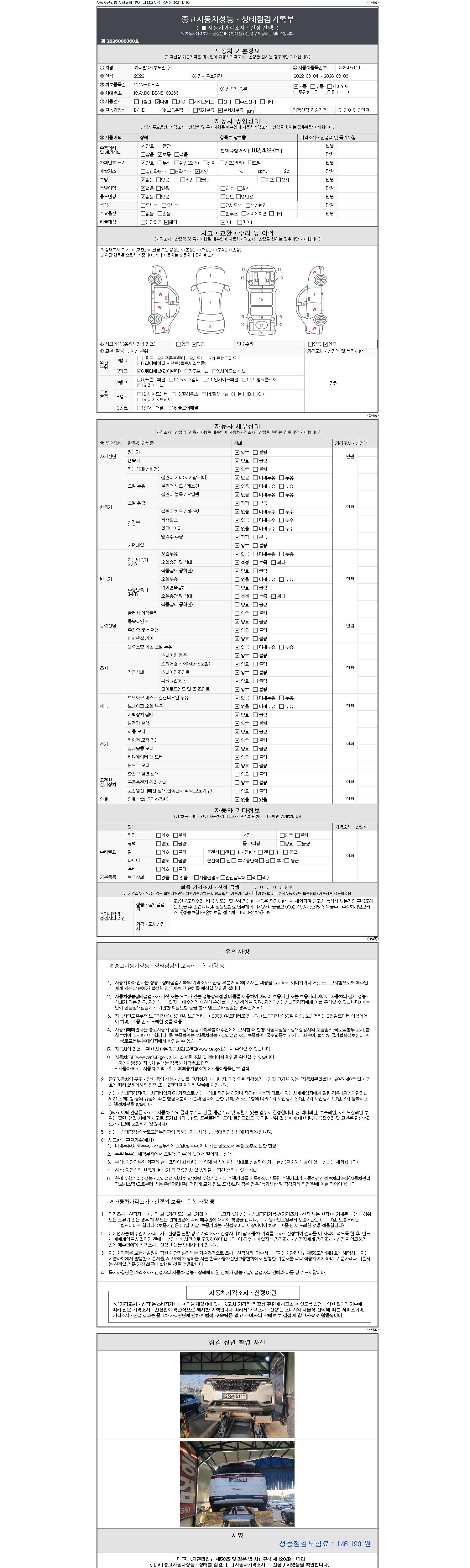- 2. 차량 등록증이나 성능점검지 등을 상담자에게 요청및 확인하시고 사전에 미리 점검 하시기를 권유드립니다.