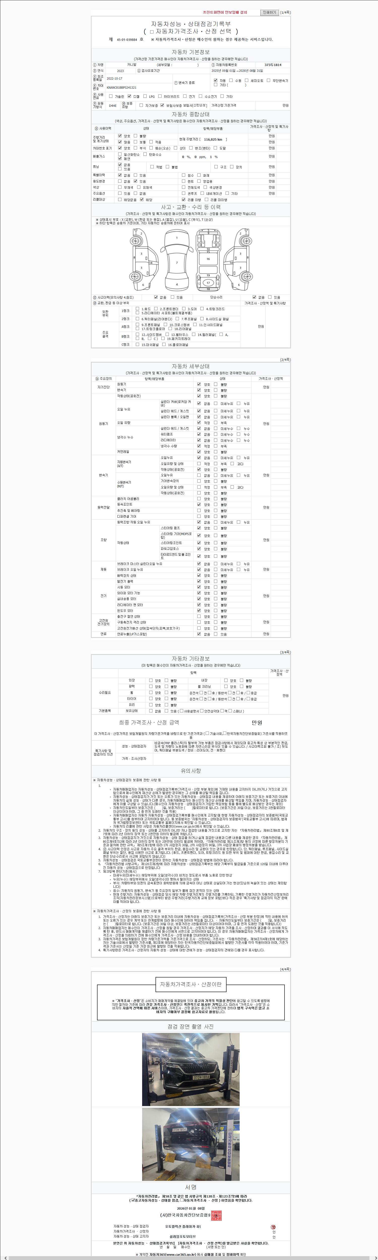 | 주행거리 | 116,825 km | 차량번호 | 373두1814 | 사고유무 | 성능기록부 참조 | 제시번호 | 제 2147483647 호 |