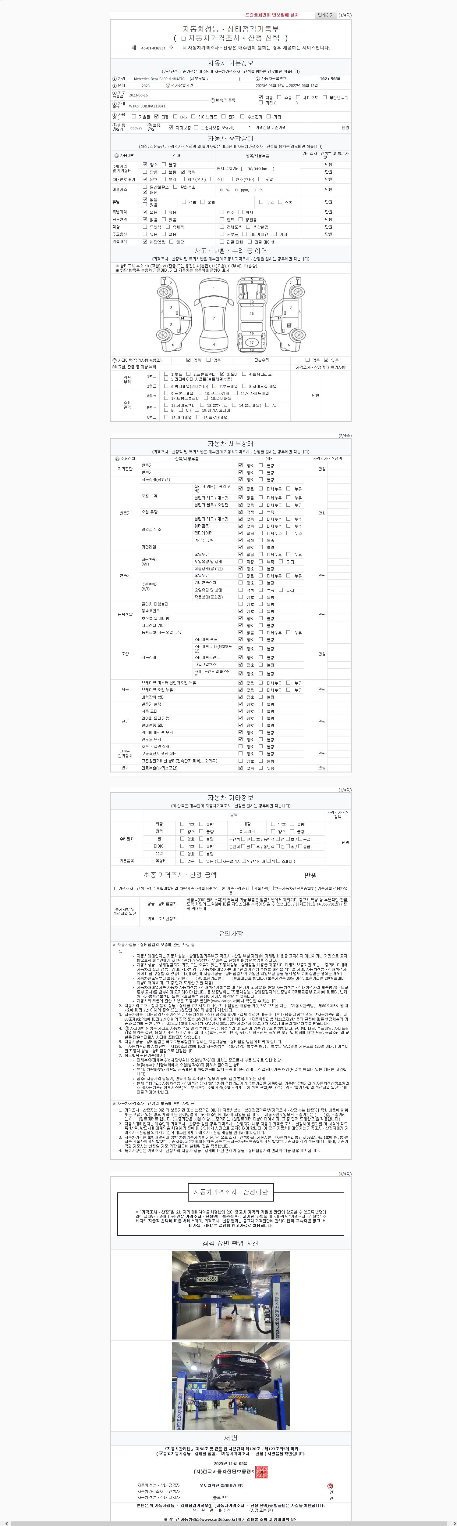 - 사고유무 : 성능기록부 참조