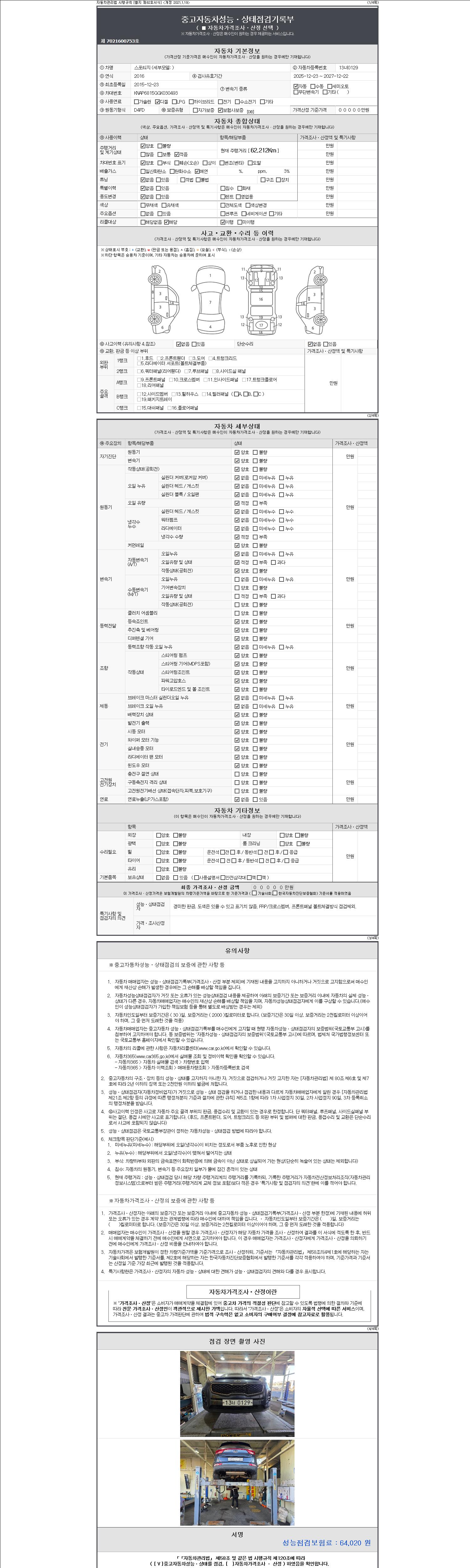 -중고자동차 매매업자를 통해 차량을 구입하실 경우 반드시 "중고자동차 성능, 상태점검 기록부"를 교뷰 받으셔야 하며, 매매업자는 반드시 의무 교부 하여야 압니다.