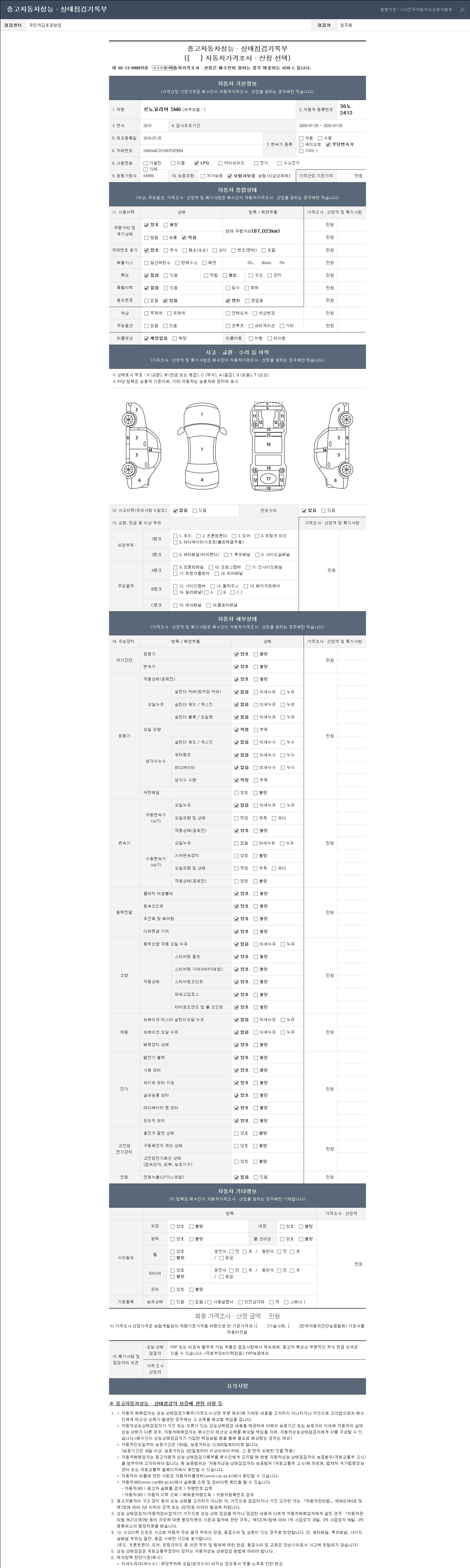 - 2. 차량 등록증이나 성능점검지 등을 상담자에게 요청및 확인하시고 사전에 미리 점검 하시기를 권유드립니다.