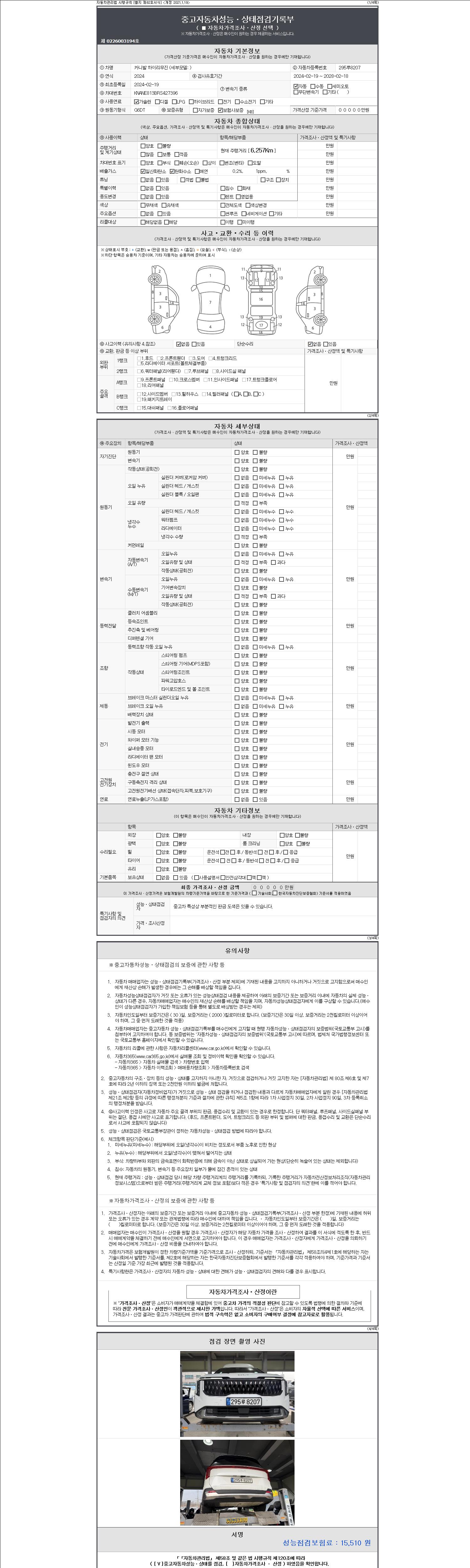 | 주행거리 | 6,257 km | 차량번호 | 295루8207 | 사고유무 | 성능기록부 참조 | 제시번호 | 제 2147483647 호 |