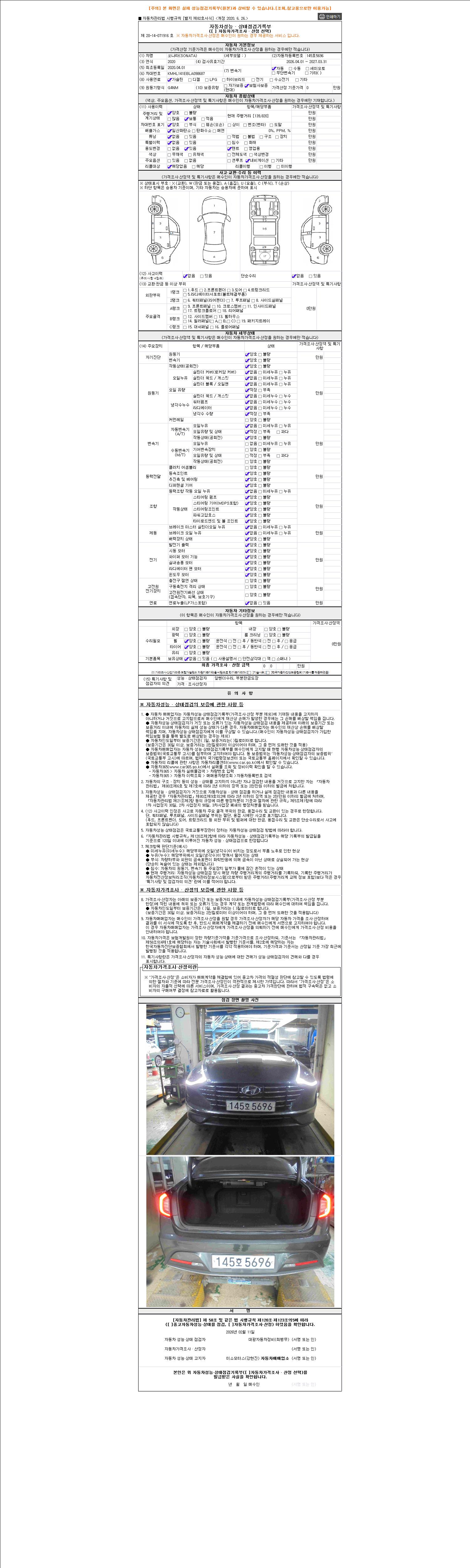 - 2. 차량 등록증이나 성능점검지 등을 상담자에게 요청및 확인하시고 사전에 미리 점검 하시기를 권유드립니다.