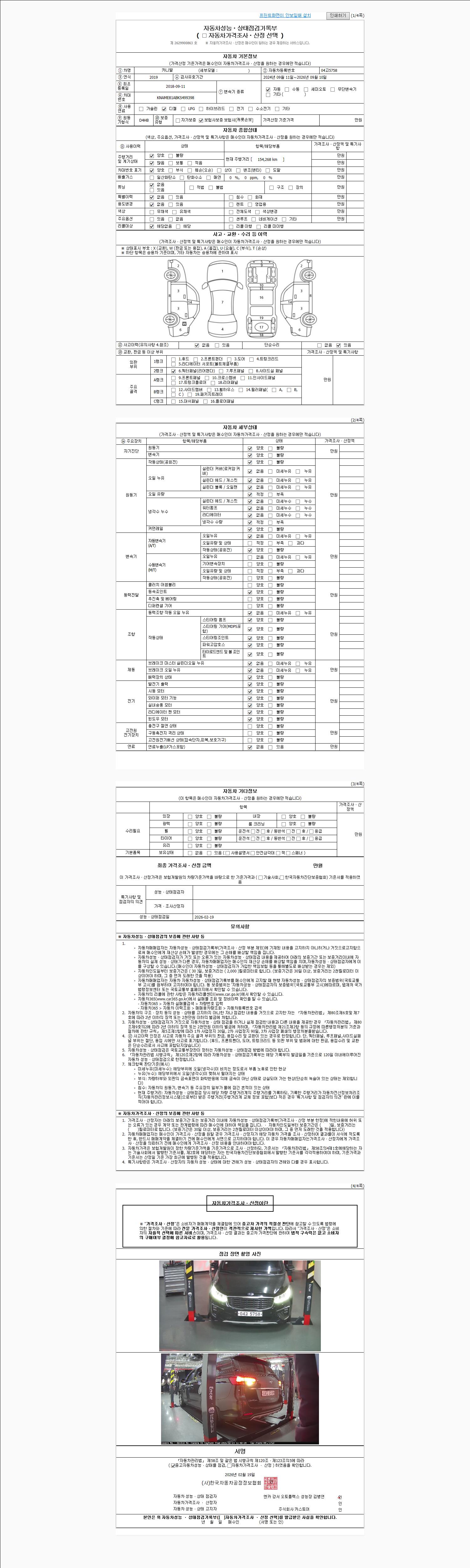 | 주행거리 | 154,268 km | 차량번호 | 04고5758 | 사고유무 | 성능기록부 참조 | 제시번호 | 제 2026020945 호 |