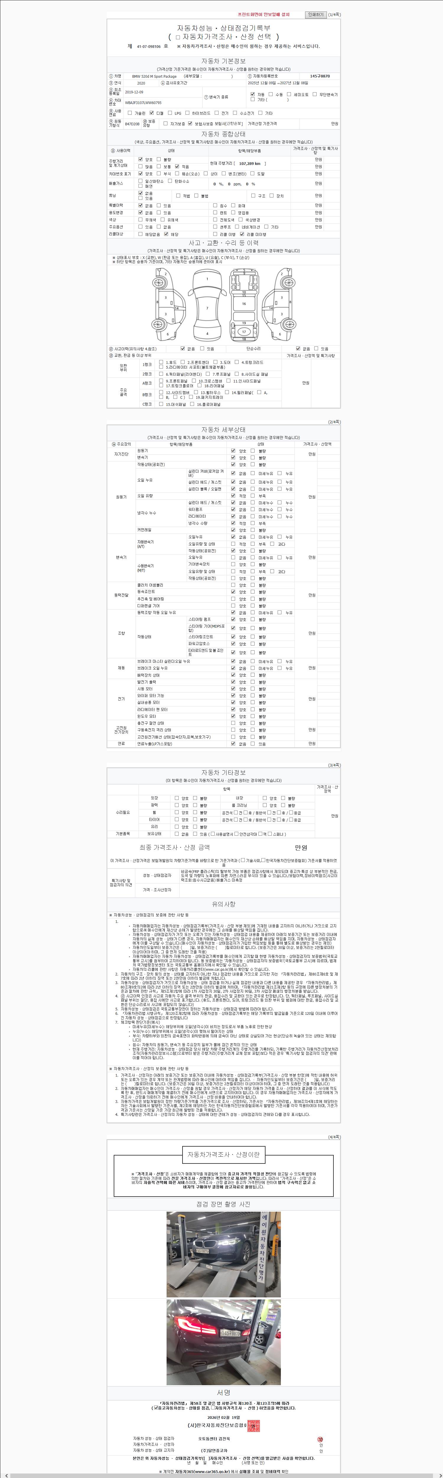 - 사고유무 : 성능기록부 참조