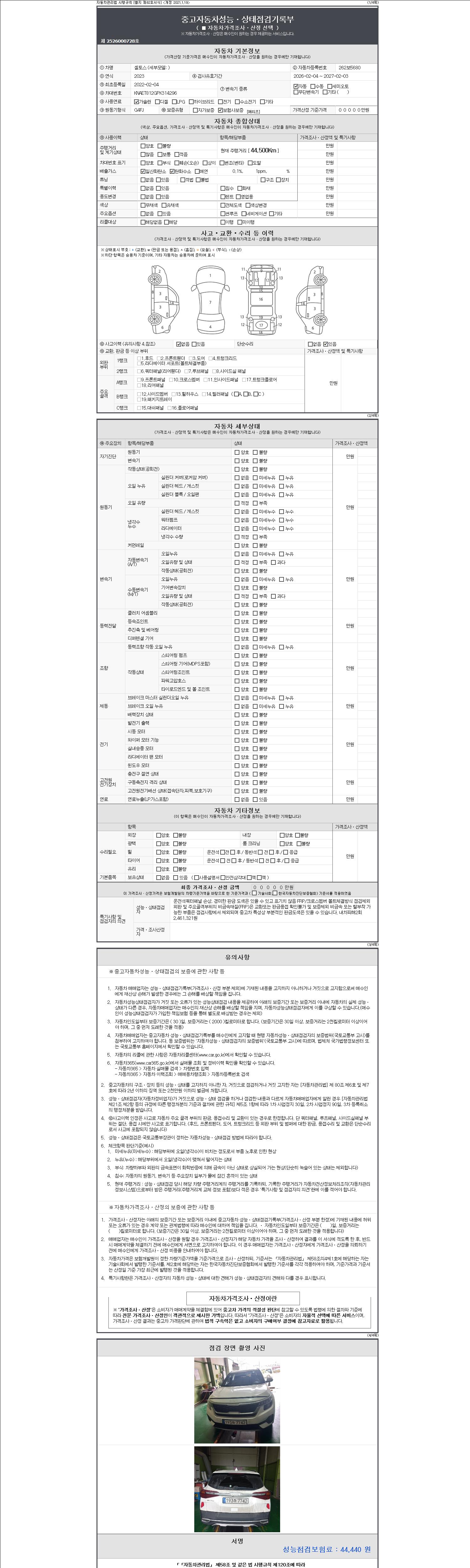 -중고자동차 매매업자를 통해 차량을 구입하실 경우 반드시 "중고자동차 성능, 상태점검 기록부"를 교뷰 받으셔야 하며, 매매업자는 반드시 의무 교부 하여야 압니다.