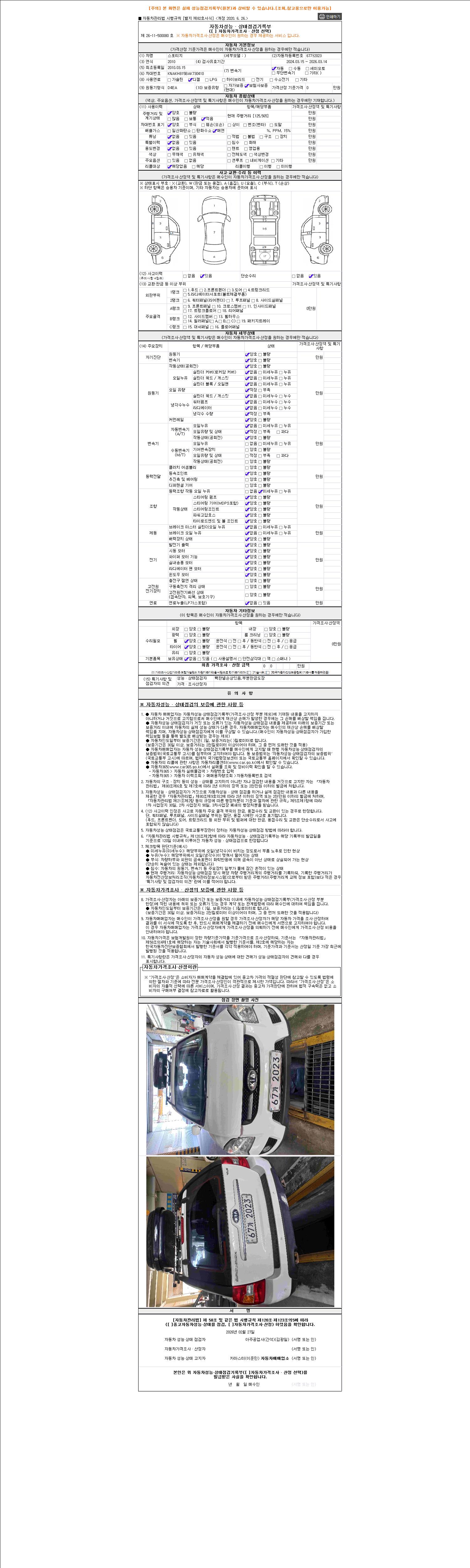 - 2. 차량 등록증이나 성능점검지 등을 상담자에게 요청및 확인하시고 사전에 미리 점검 하시기를 권유드립니다.