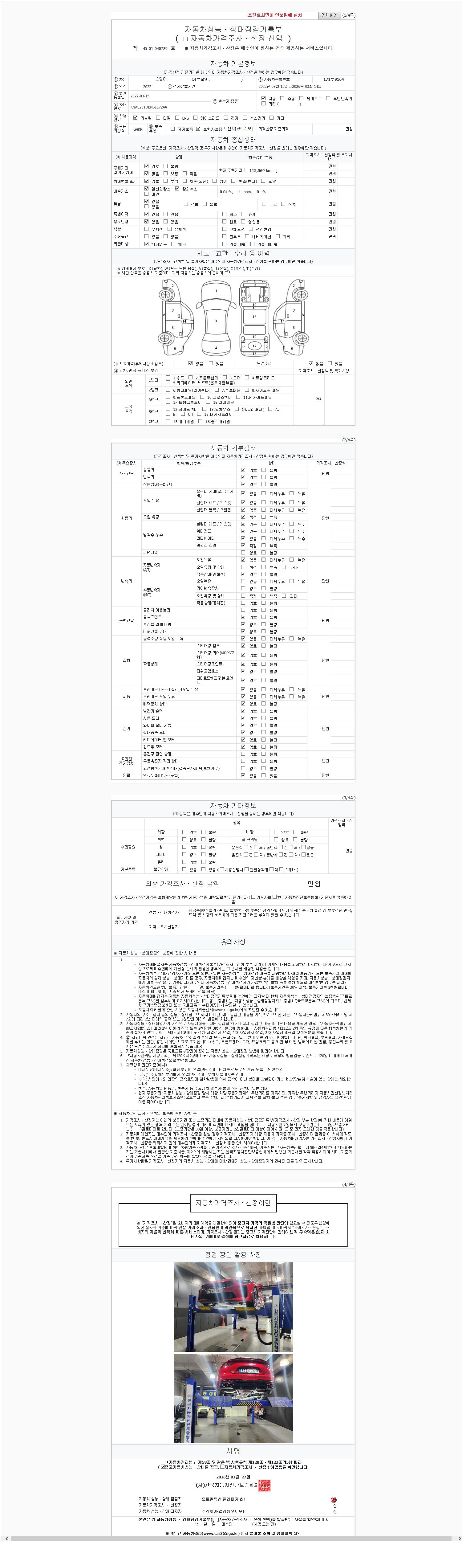 | 주행거리 | 115,069 km | 차량번호 | 171루9164 | 사고유무 | 성능기록부 참조 | 제시번호 | 제 2147483647 호 |