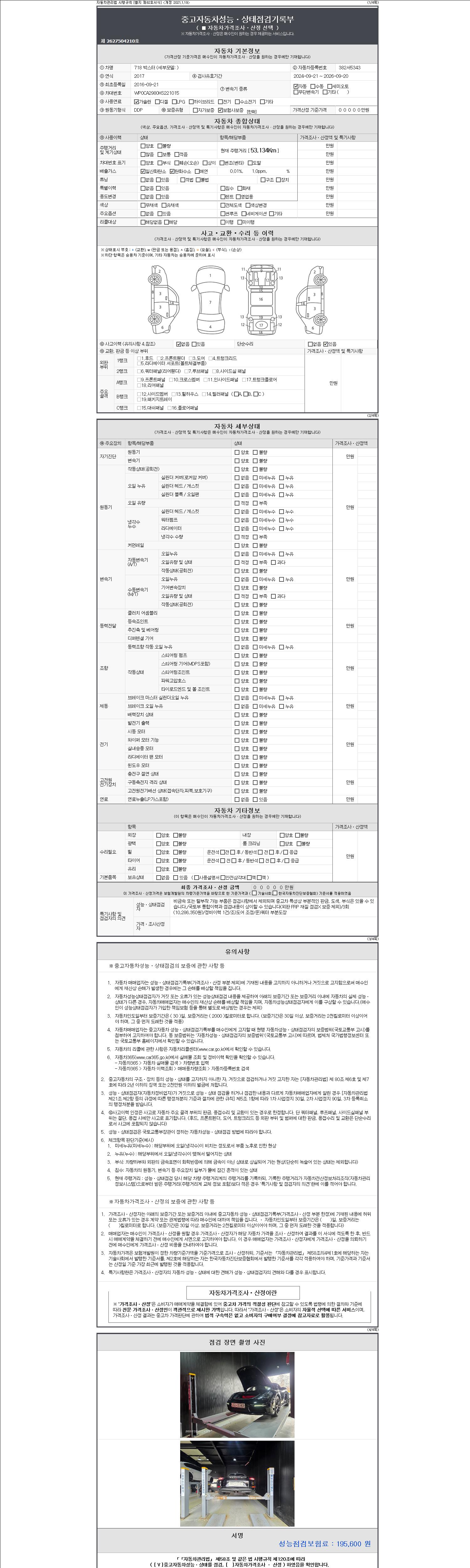 - 사고유무 : 성능기록부 참조