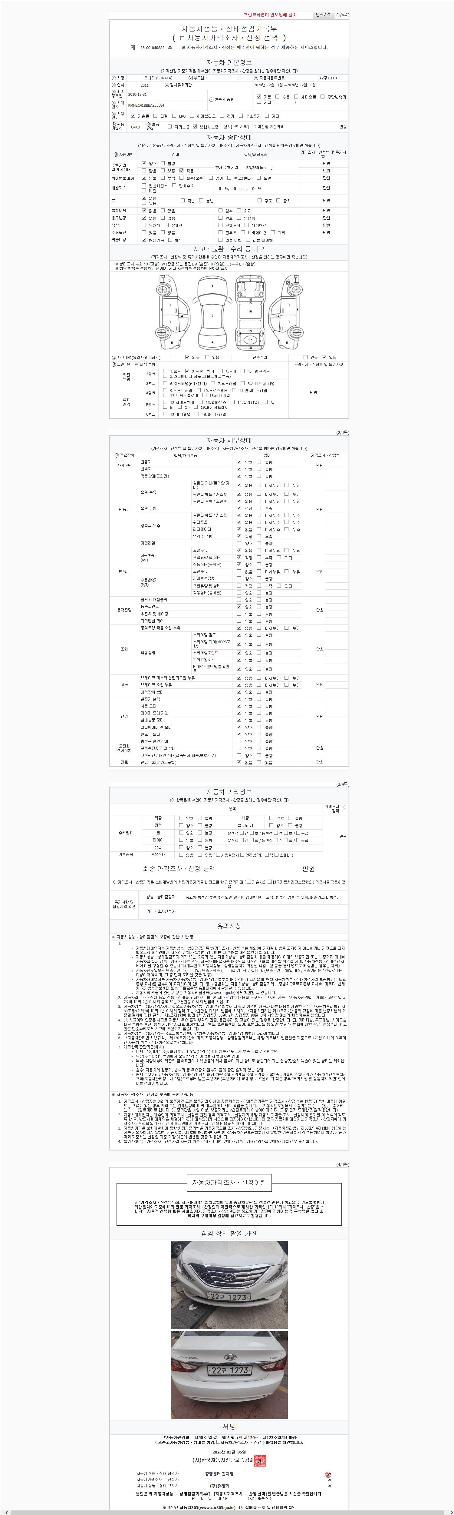 -중고자동차 매매업자를 통해 차량을 구입하실 경우 반드시 "중고자동차 성능, 상태점검 기록부"를 교뷰 받으셔야 하며, 매매업자는 반드시 의무 교부 하여야 압니다.
