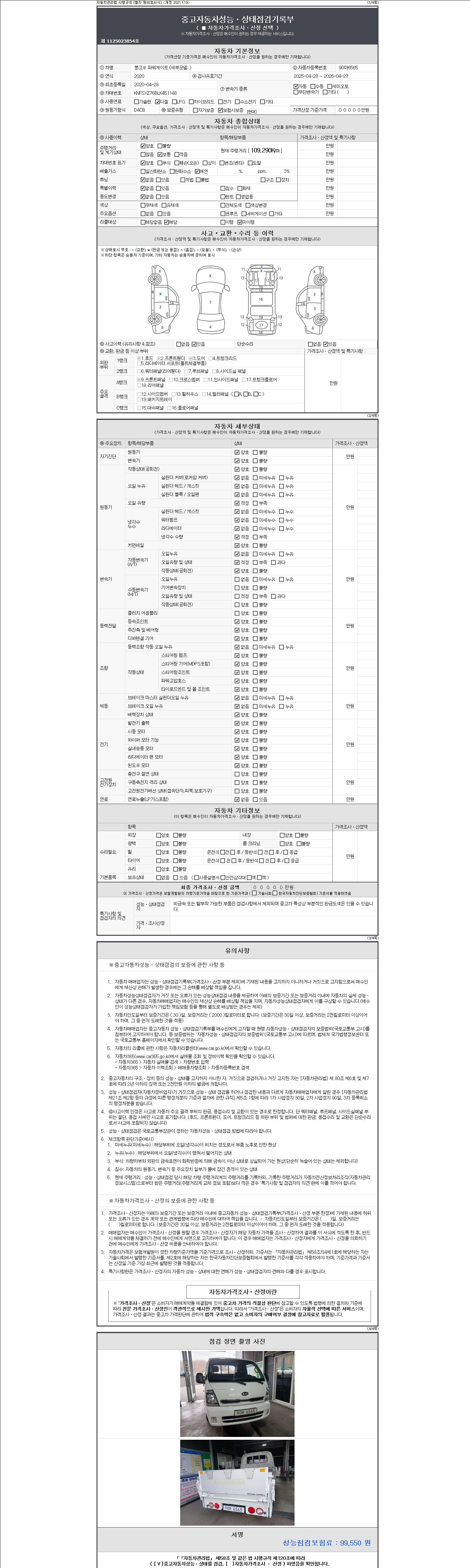 -중고자동차 매매업자를 통해 차량을 구입하실 경우 반드시 "중고자동차 성능, 상태점검 기록부"를 교뷰 받으셔야 하며, 매매업자는 반드시 의무 교부 하여야 압니다.