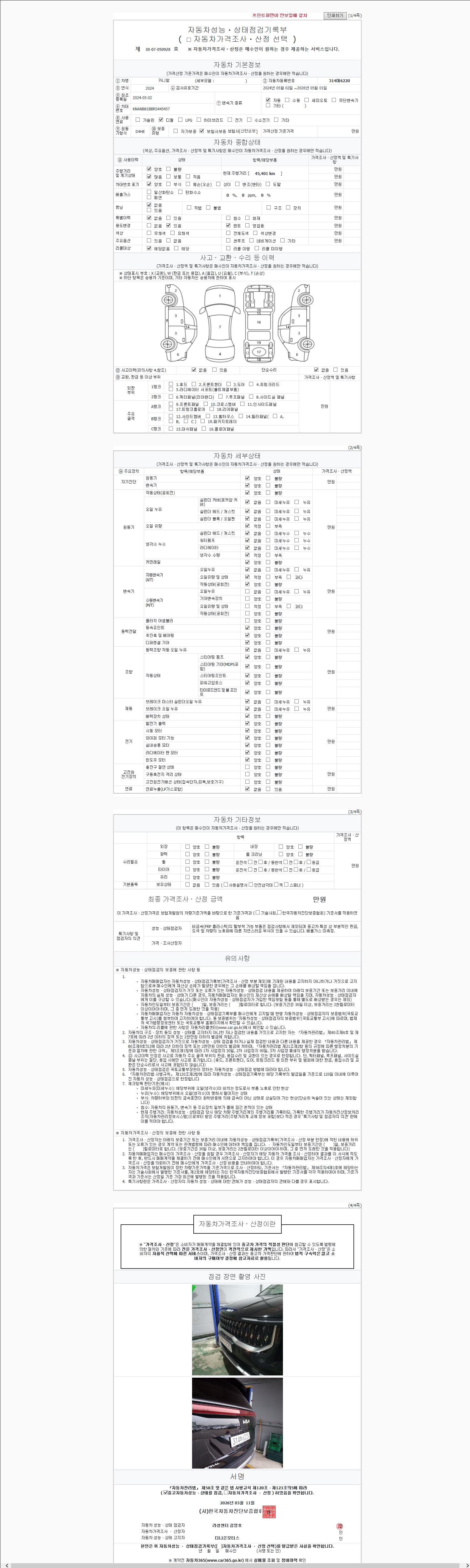 - 2. 차량 등록증이나 성능점검지 등을 상담자에게 요청및 확인하시고 사전에 미리 점검 하시기를 권유드립니다.