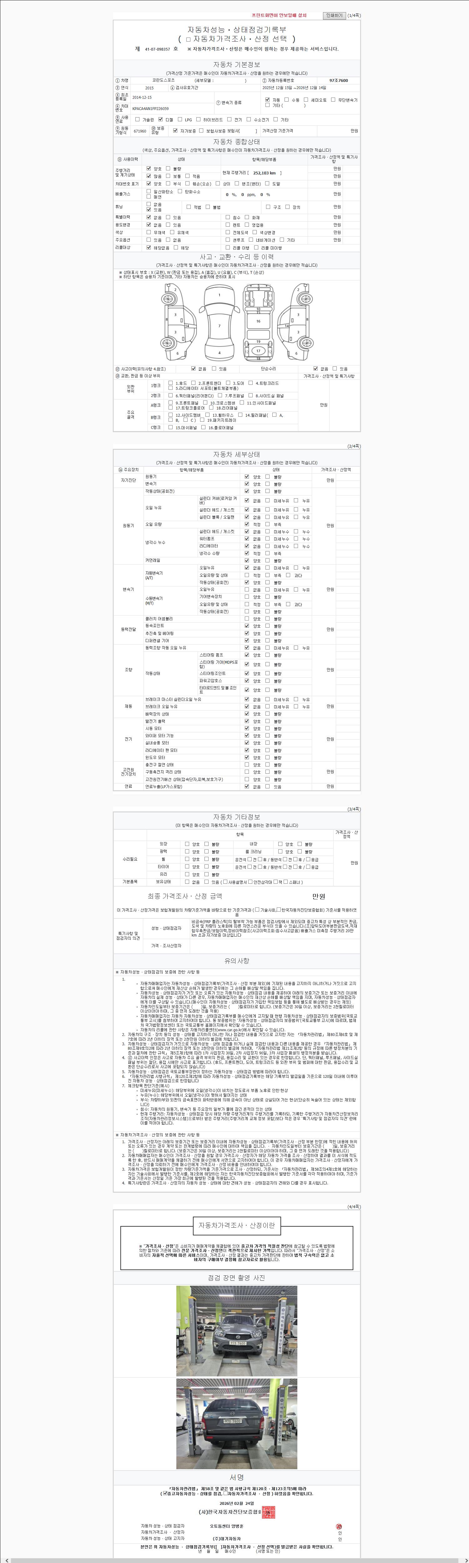 | 주행거리 | 252,103 km | 차량번호 | 97조7600 | 사고유무 | 성능기록부 참조 | 제시번호 | 제 2147483647 호 |