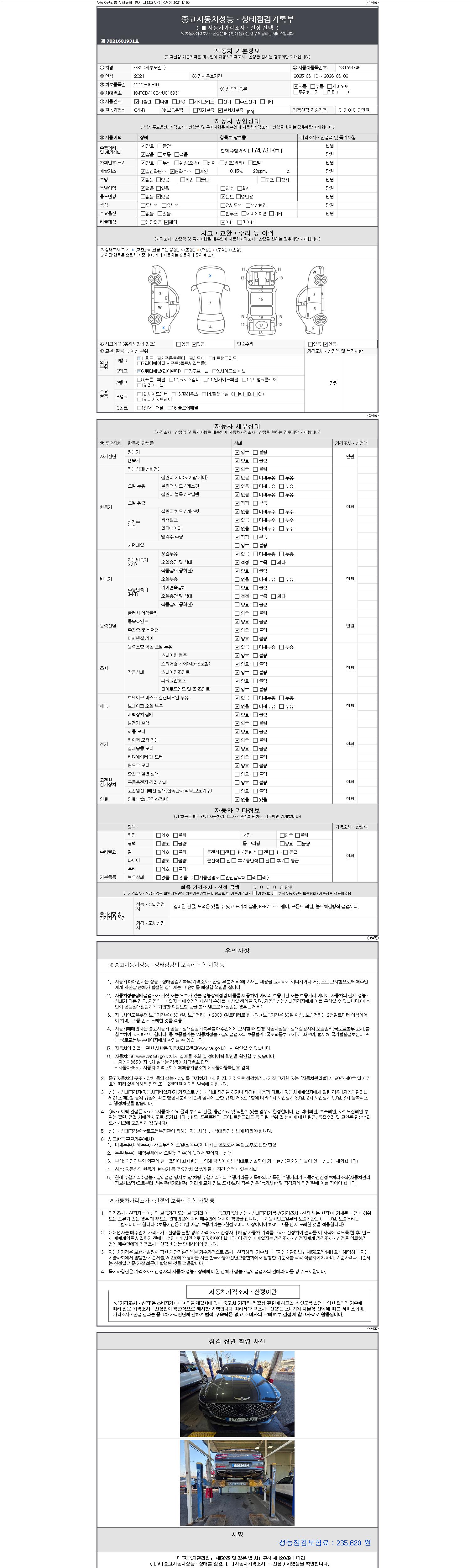 - 사고유무 : 성능기록부 참조