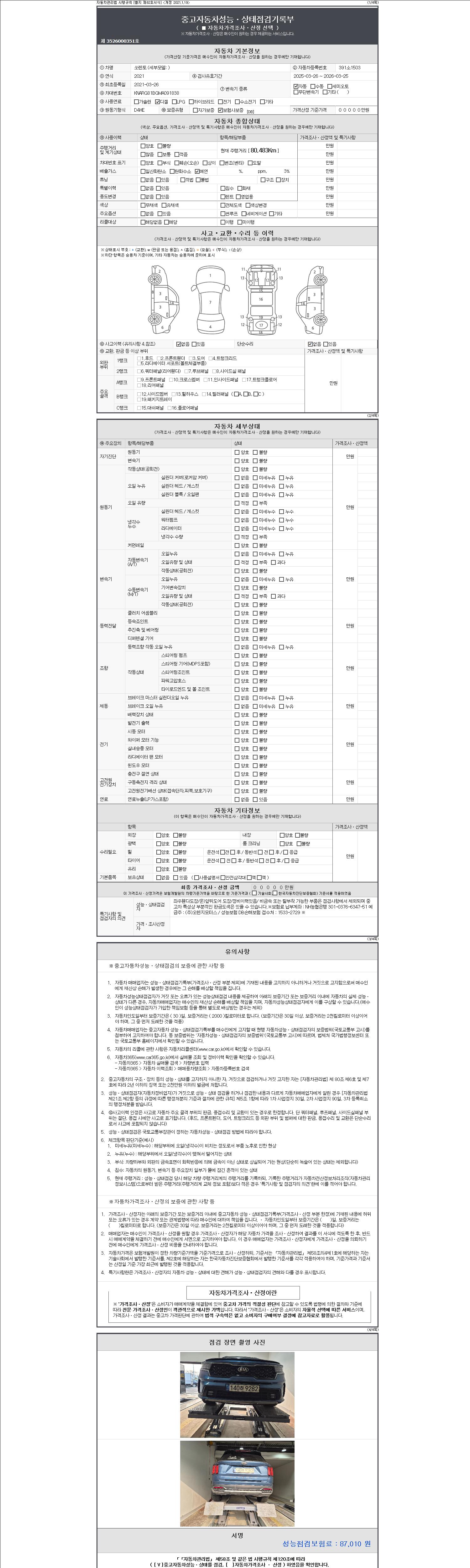 - 2. 차량 등록증이나 성능점검지 등을 상담자에게 요청및 확인하시고 사전에 미리 점검 하시기를 권유드립니다.