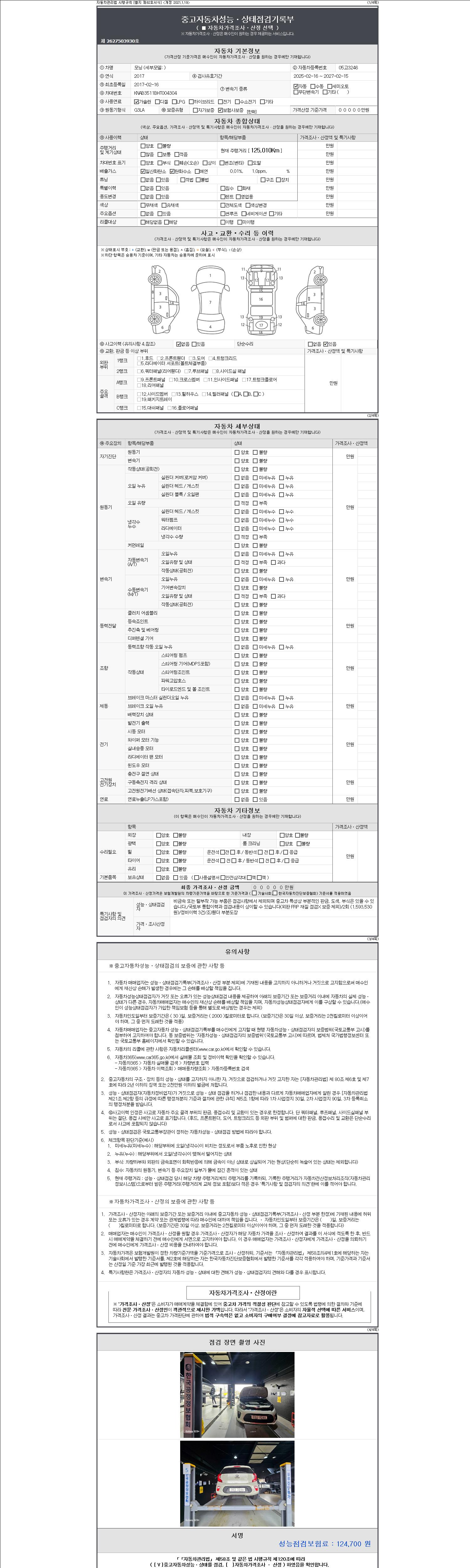 - 2. 차량 등록증이나 성능점검지 등을 상담자에게 요청및 확인하시고 사전에 미리 점검 하시기를 권유드립니다.