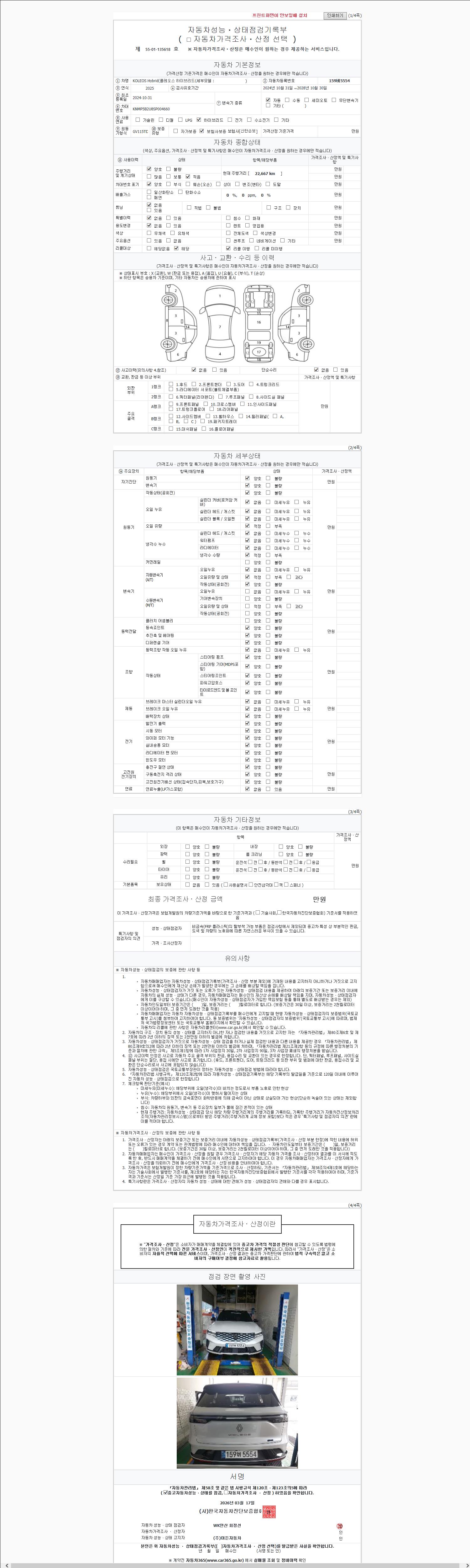 - 2. 차량 등록증이나 성능점검지 등을 상담자에게 요청및 확인하시고 사전에 미리 점검 하시기를 권유드립니다.