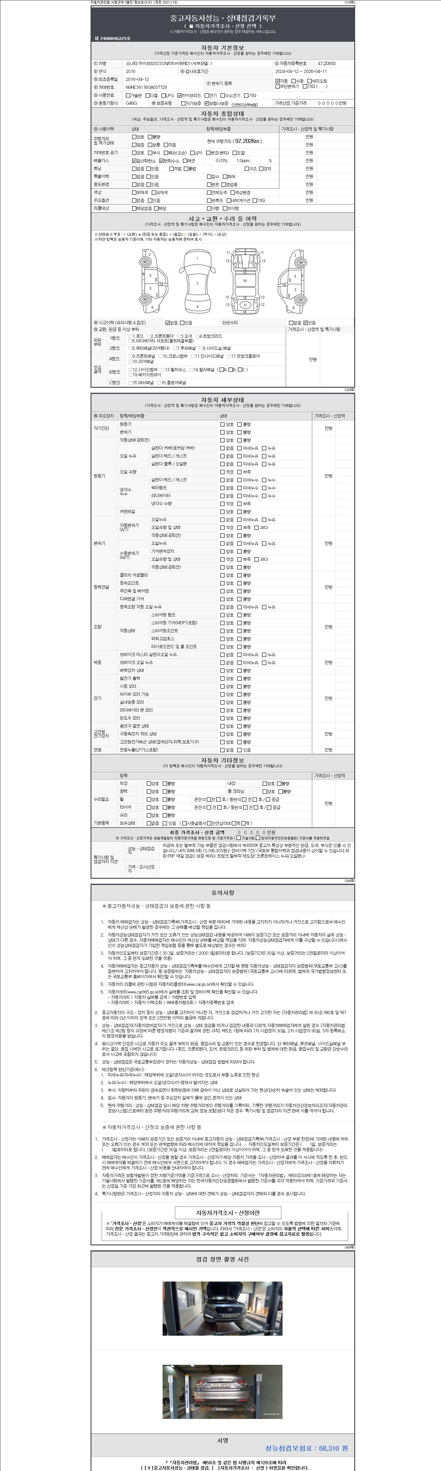 -중고자동차 매매업자를 통해 차량을 구입하실 경우 반드시 "중고자동차 성능, 상태점검 기록부"를 교뷰 받으셔야 하며, 매매업자는 반드시 의무 교부 하여야 압니다.