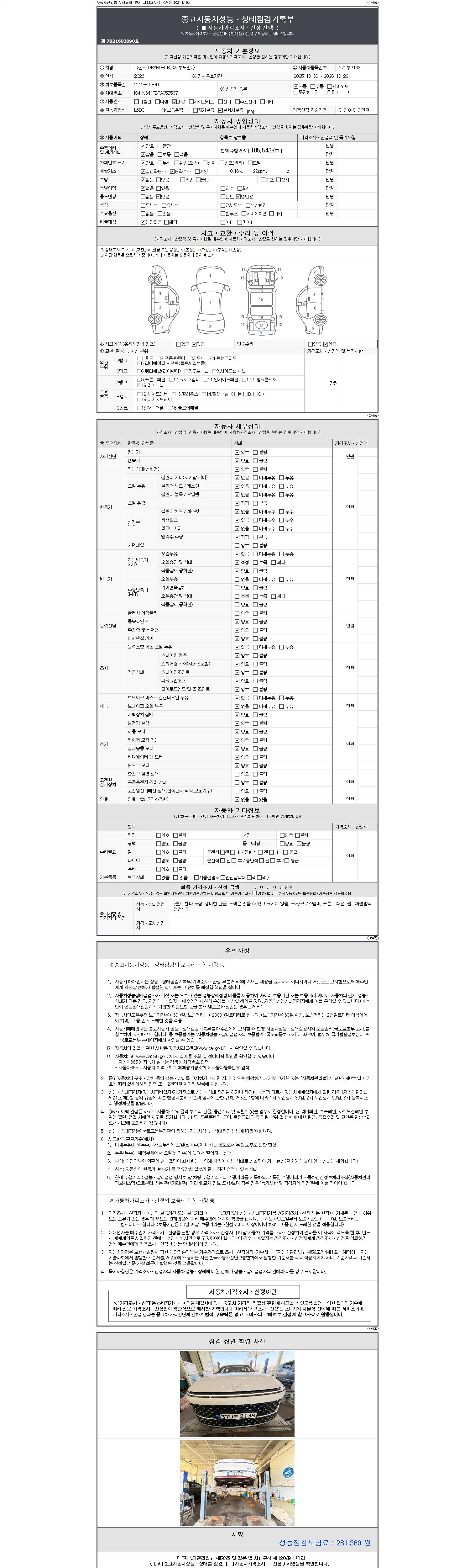 - 사고유무 : 성능기록부 참조