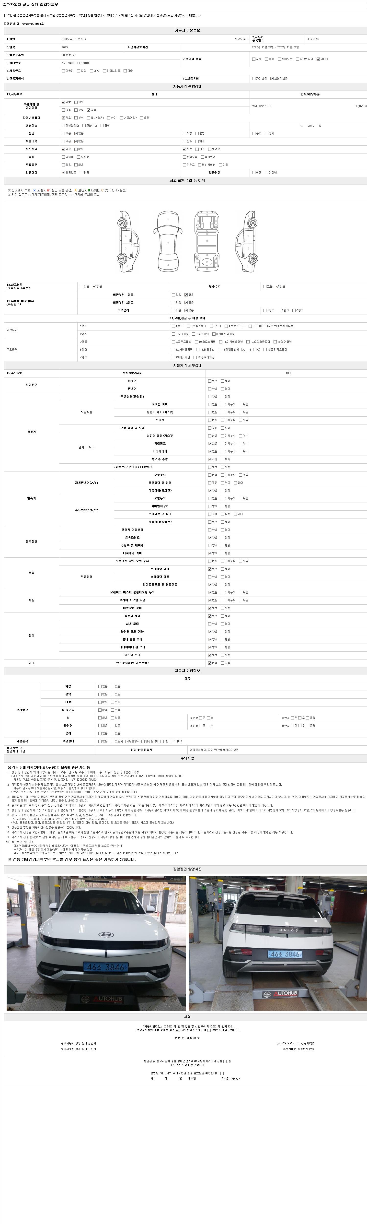 | 주행거리 | 17,071 km | 차량번호 | 46소3846 | 사고유무 | 성능기록부 참조 | 제시번호 | 제 2147483647 호 |