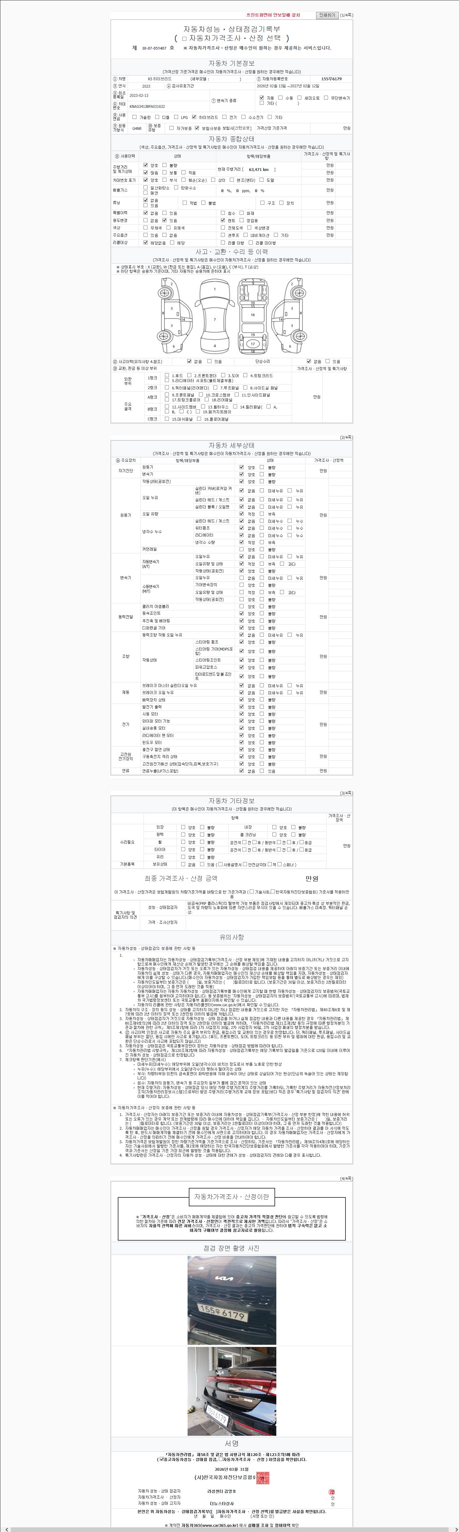 | 주행거리 | 63,471 km | 차량번호 | 155우6179 | 사고유무 | 성능기록부 참조 | 제시번호 | 제 2147483647 호 |