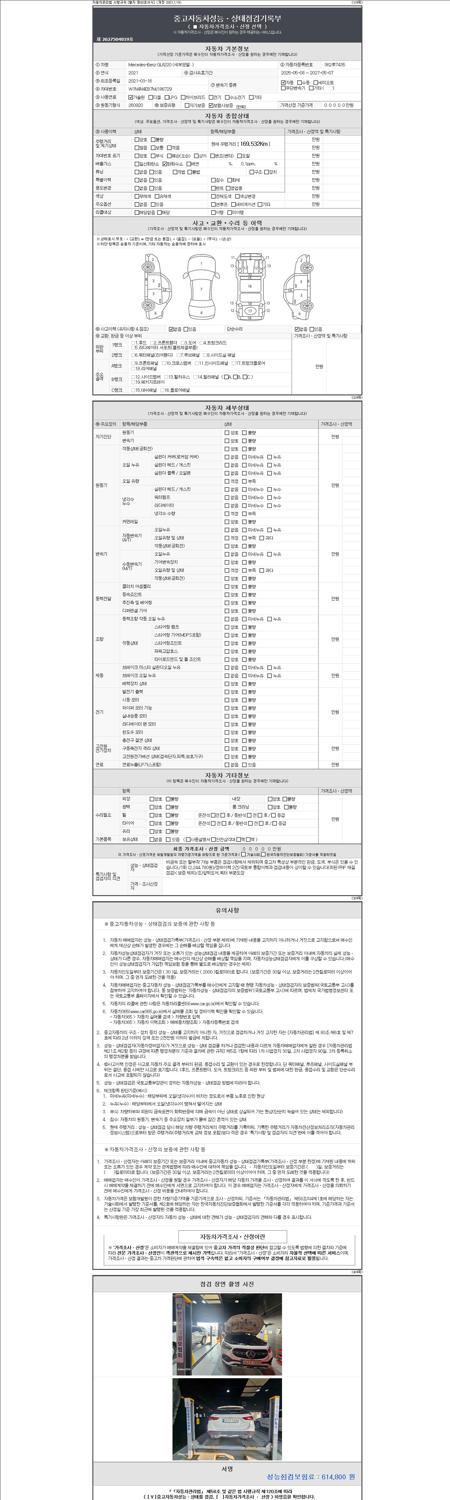 - 2. 차량 등록증이나 성능점검지 등을 상담자에게 요청및 확인하시고 사전에 미리 점검 하시기를 권유드립니다.