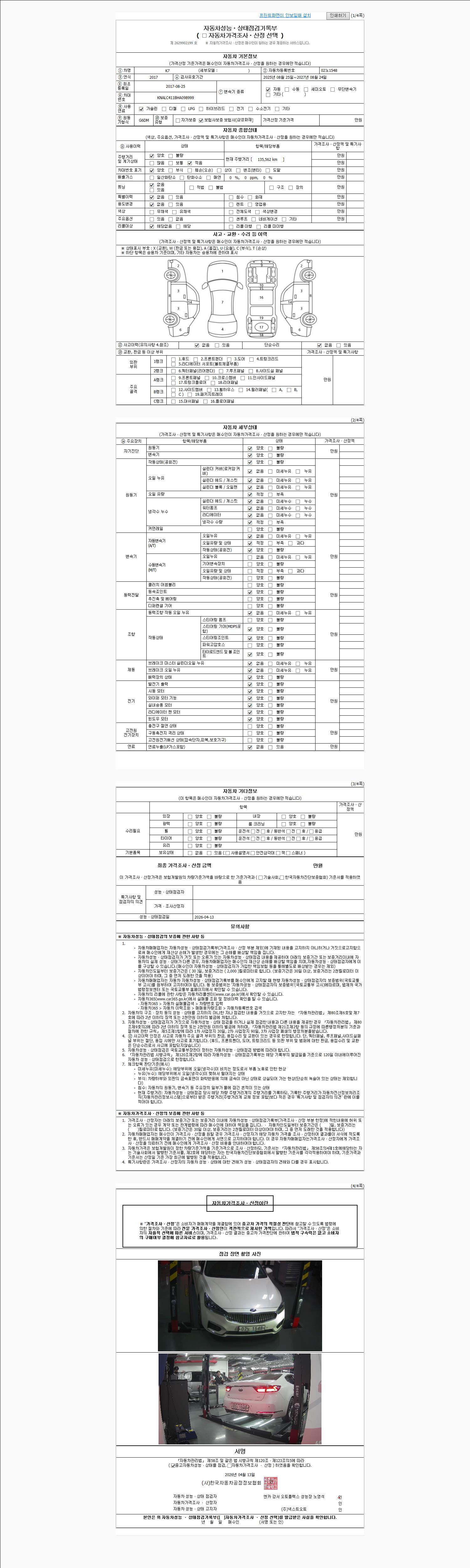 - 2. 차량 등록증이나 성능점검지 등을 상담자에게 요청및 확인하시고 사전에 미리 점검 하시기를 권유드립니다.