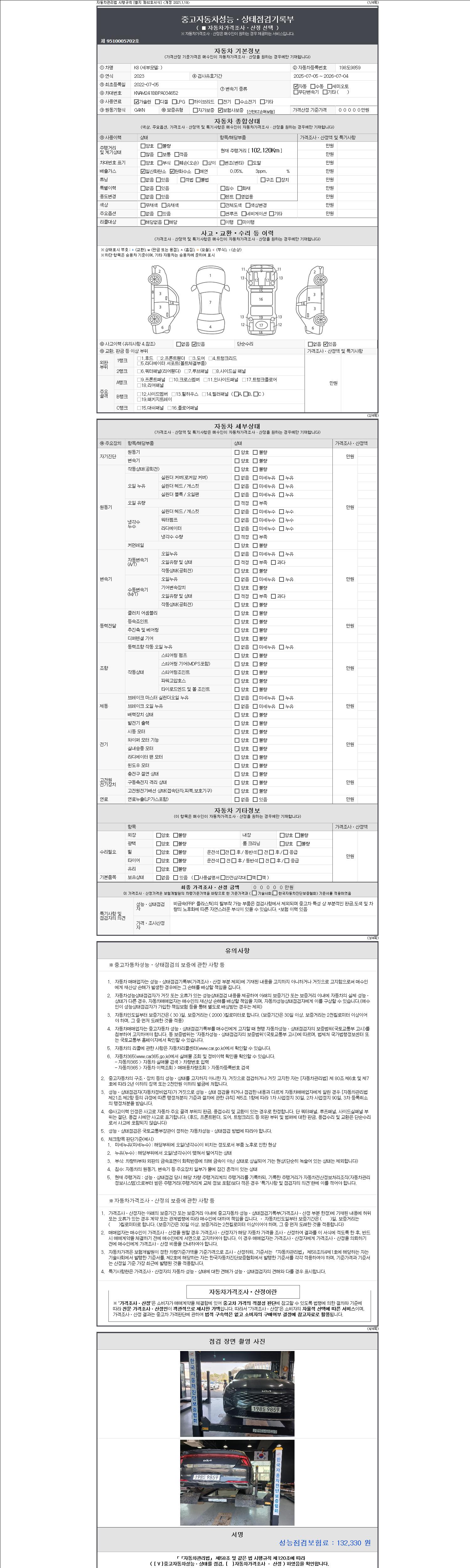 - 2. 차량 등록증이나 성능점검지 등을 상담자에게 요청및 확인하시고 사전에 미리 점검 하시기를 권유드립니다.