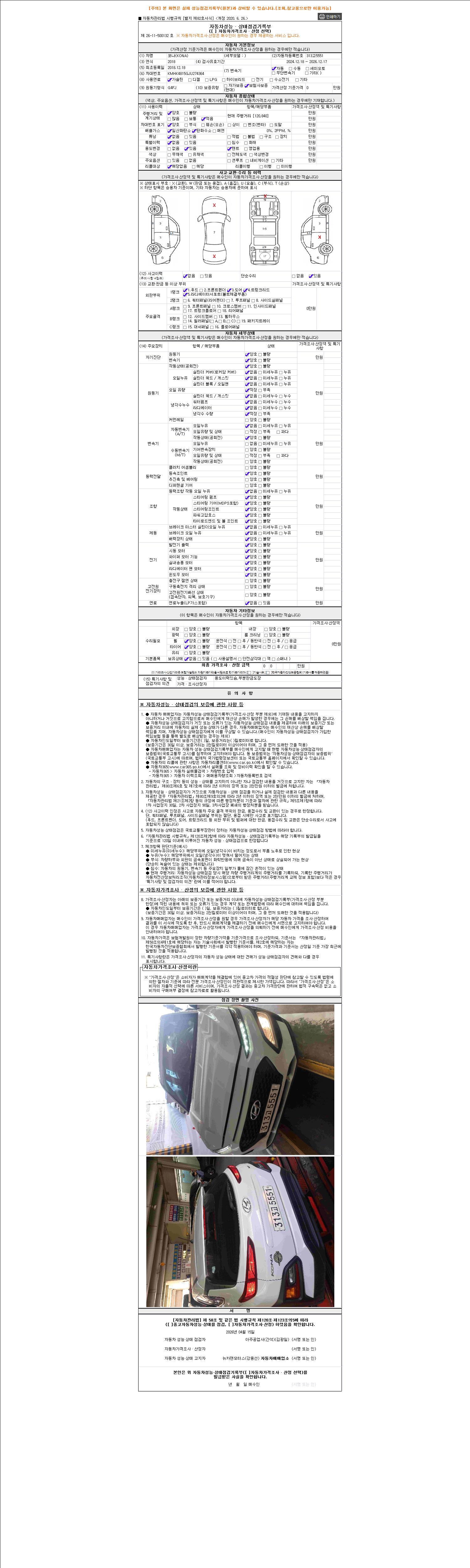 - 2. 차량 등록증이나 성능점검지 등을 상담자에게 요청및 확인하시고 사전에 미리 점검 하시기를 권유드립니다.