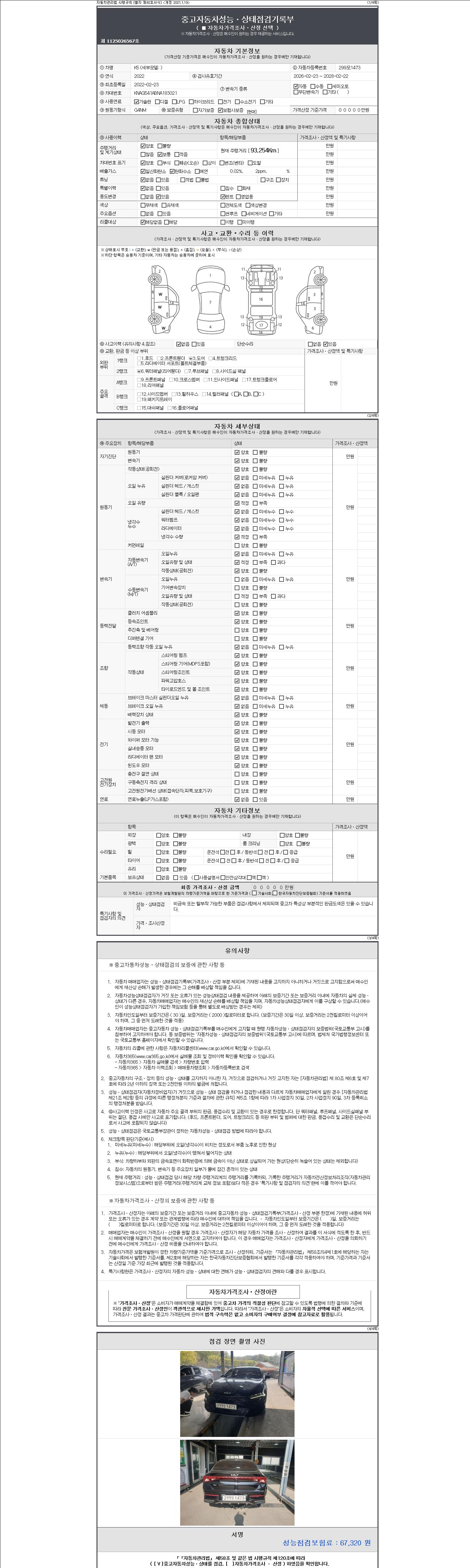자동차관리법 시행규칙 제120조의 규정에 따라 별지 제 82호서식 《중고자동차 성능, 상태점검 기록부》를 발행한 성능, 상태점검자 및 매매자는 아래의 보증기간 또는 보증거리 이내의 중고자동차, 성능점검 기록부에 기재된 내용과 자동차의 실제 성능, 상태가 다른 경우 계약 또는 관계법령에 따라 매수인에 대하여 책임을 집니다.
