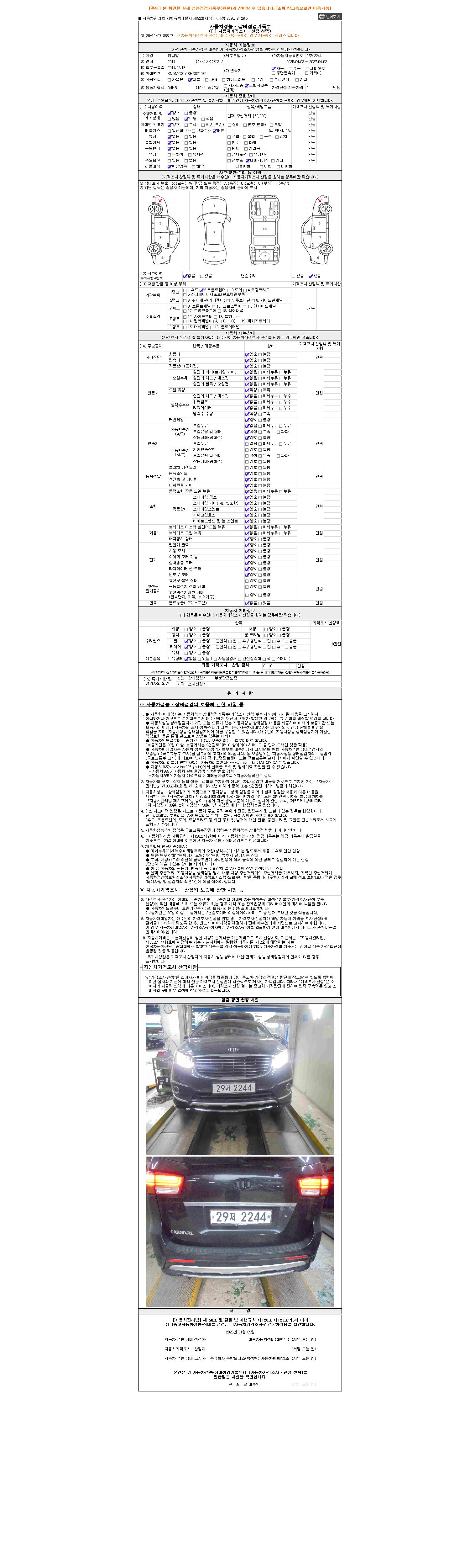 - 2. 차량 등록증이나 성능점검지 등을 상담자에게 요청및 확인하시고 사전에 미리 점검 하시기를 권유드립니다.