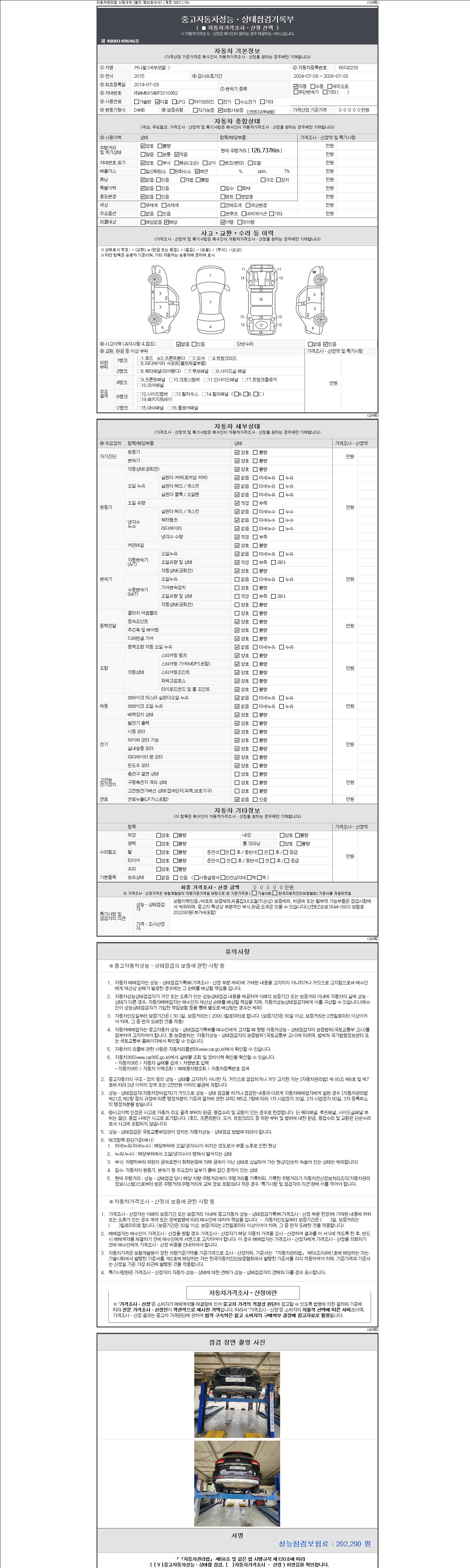 - 2. 차량 등록증이나 성능점검지 등을 상담자에게 요청및 확인하시고 사전에 미리 점검 하시기를 권유드립니다.