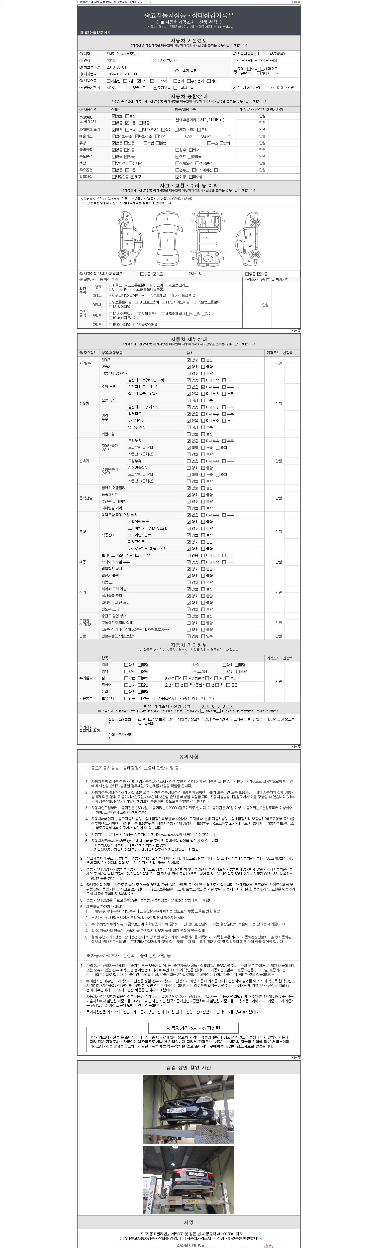 - 2. 차량 등록증이나 성능점검지 등을 상담자에게 요청및 확인하시고 사전에 미리 점검 하시기를 권유드립니다.