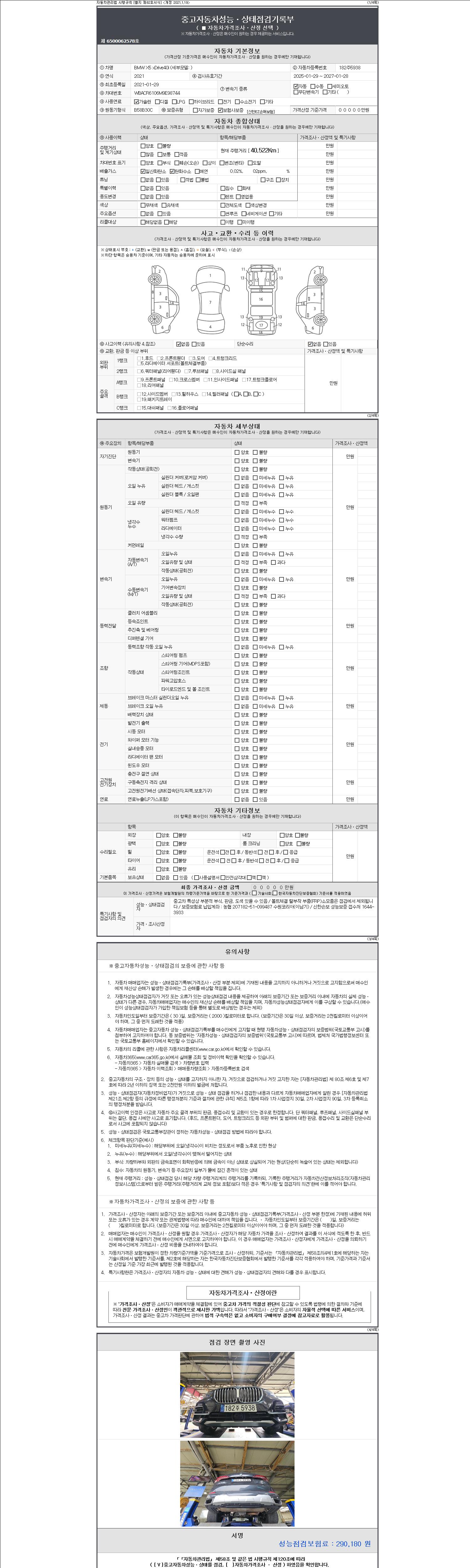 - 사고유무 : 성능기록부 참조