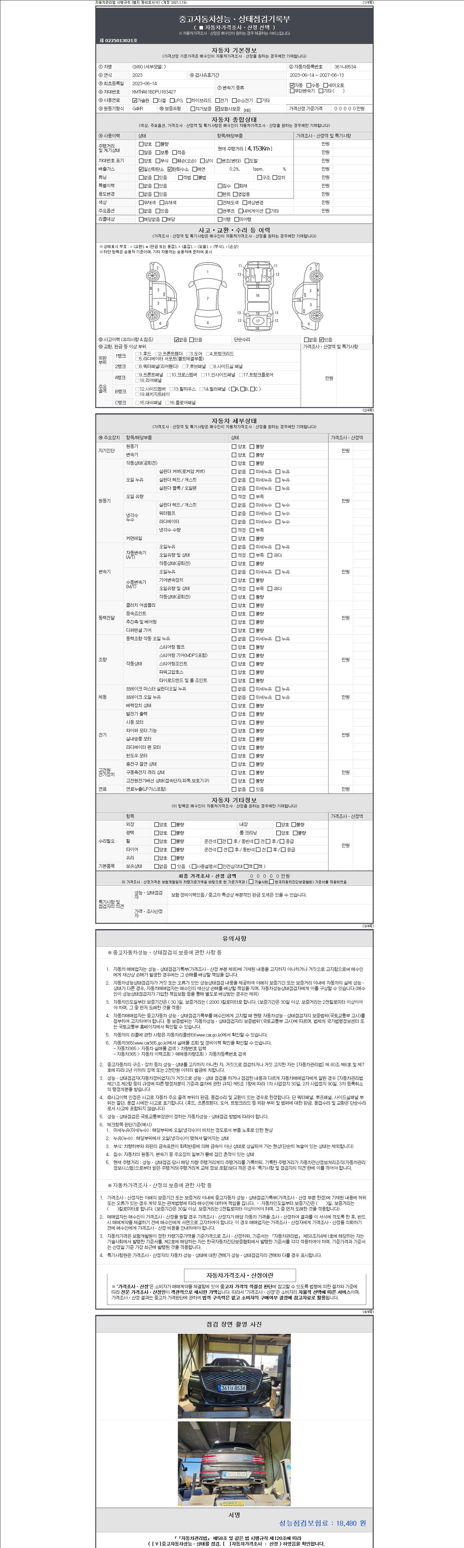 | 주행거리 | 4,133 km | 차량번호 | 361나8534 | 사고유무 | 성능기록부 참조 | 제시번호 | 제 2147483647 호 |